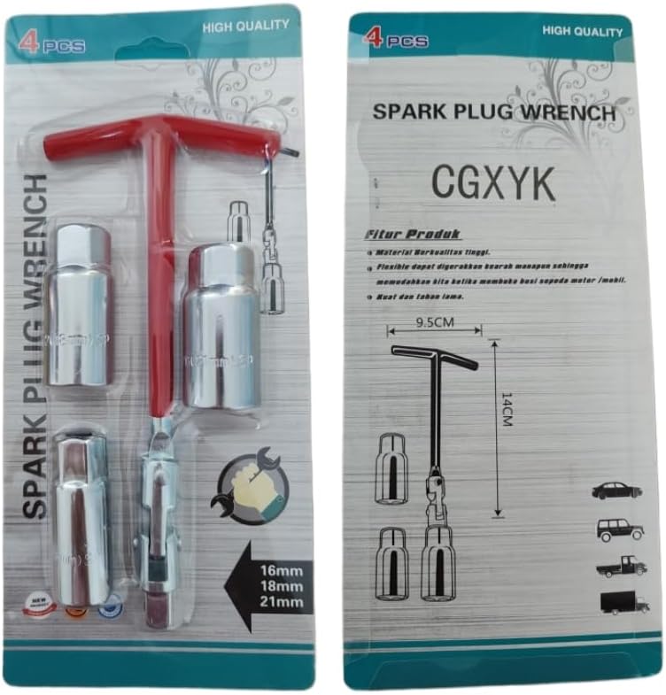 طقم مفتاح ربط مقبس شرارة على شكل حرف T (16 مم/18 مم/21 مم) - أداة إزالة وتركيب احترافية للدراجات النارية، جزازات العشب، مركبات الدفع الرباعي، نافخات الثلج، المحركات الصغيرة وما إلى ذلك - 3 أحجام