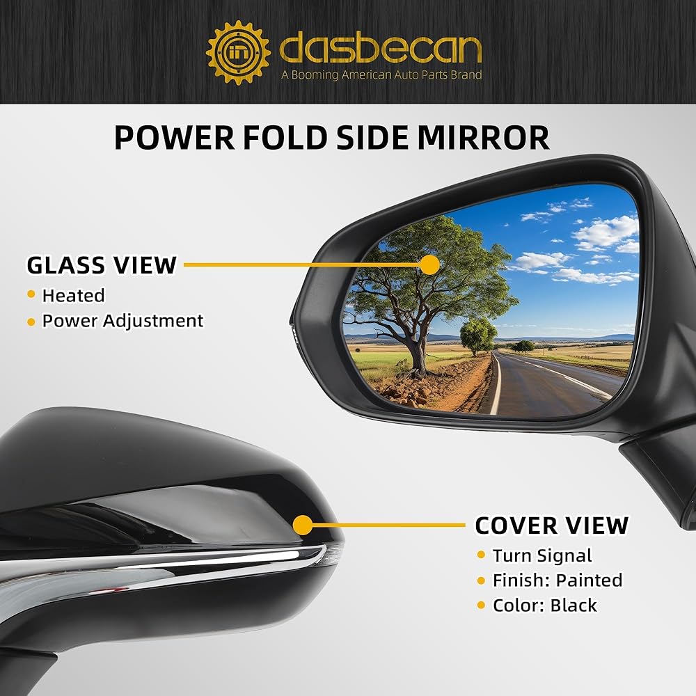 [Function] Power Folding, Power Adjustment on Glass, With Heated, With Memory, With LED Turn Signal Light, With Blind Spot Detection BSD, Paint to Match Black Cover, 13 Pins Connector, Left Driver Side LH