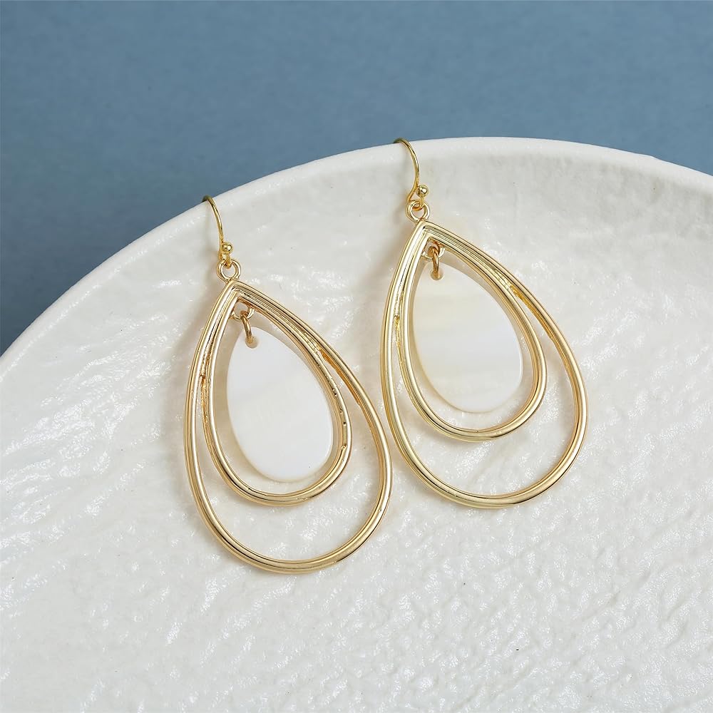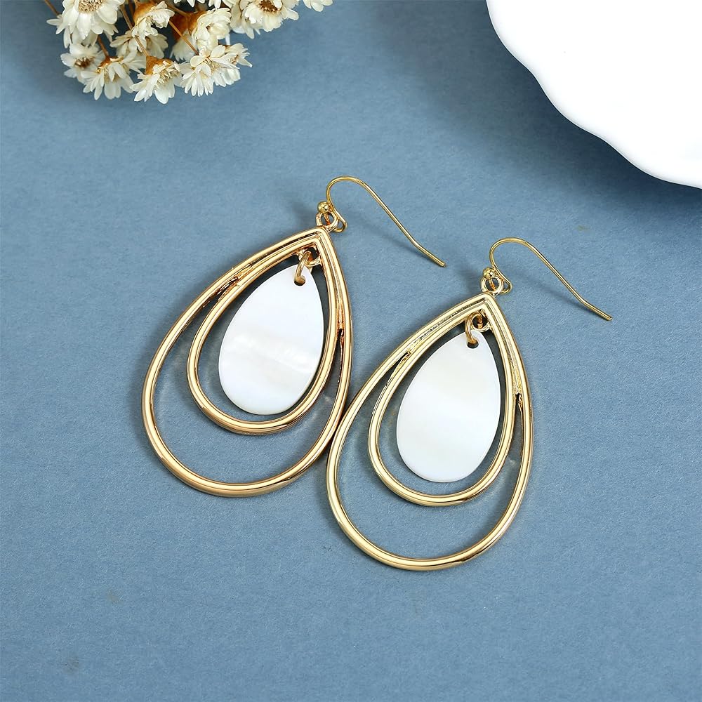 تصميم عصري وفريد من نوعه: هذه الأقراط الأنيقة الجميلة المصنوعة من اللؤلؤ مصنوعة من غلاف طبيعي عالي الجودة. تتميز بتصميم على شكل دمعة. ستجعلك ساحرة وأنيقة، وجميلة وجذابة، وتكتمل بتفاصيل معدنية فضية اللون معقدة لإضفاء لمسة من الرقي، وأقراط خفيفة الوزن. هذه الأقراط الصدفية هي الفكرة المثالية للارتداء ليلاً ونهارًا،