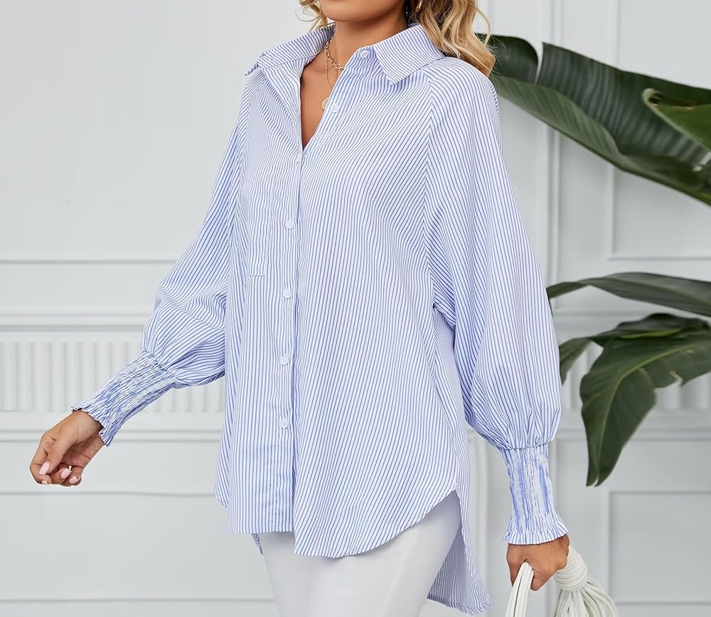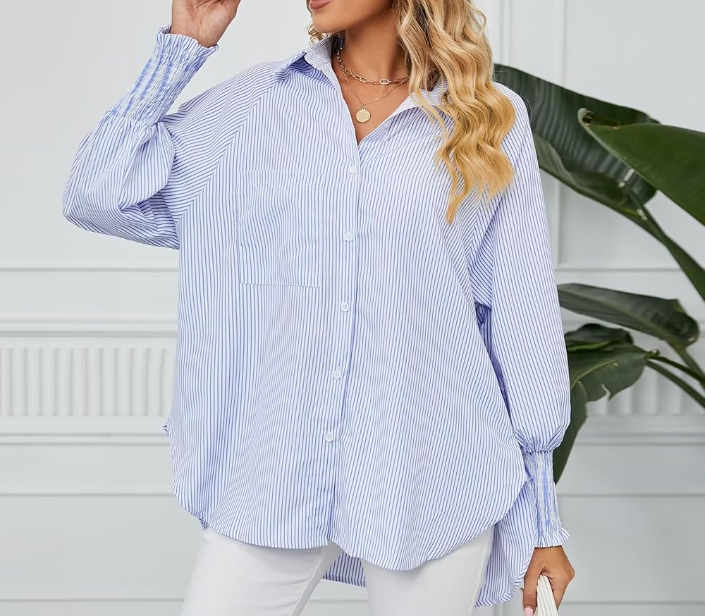 المطابقة: ارتدي هذا القميص مع بنطال جينز عالي الخصر لوجبة فطور وغداء غير رسمية، أو ضعيه فوق السراويل الضيقة للمهام، أو ارتديه كغطاء جاهز للشاطئ مع البيكيني المفضل لديك. الأصفاد المرنة والقصة المريحة تجعلها ملائمة تمامًا للتنانير أو السراويل القصيرة أو البنطلونات المصممة خصيصًا - مثالية للانتقال من المهمات النهارية إلى نزهات المساء.
