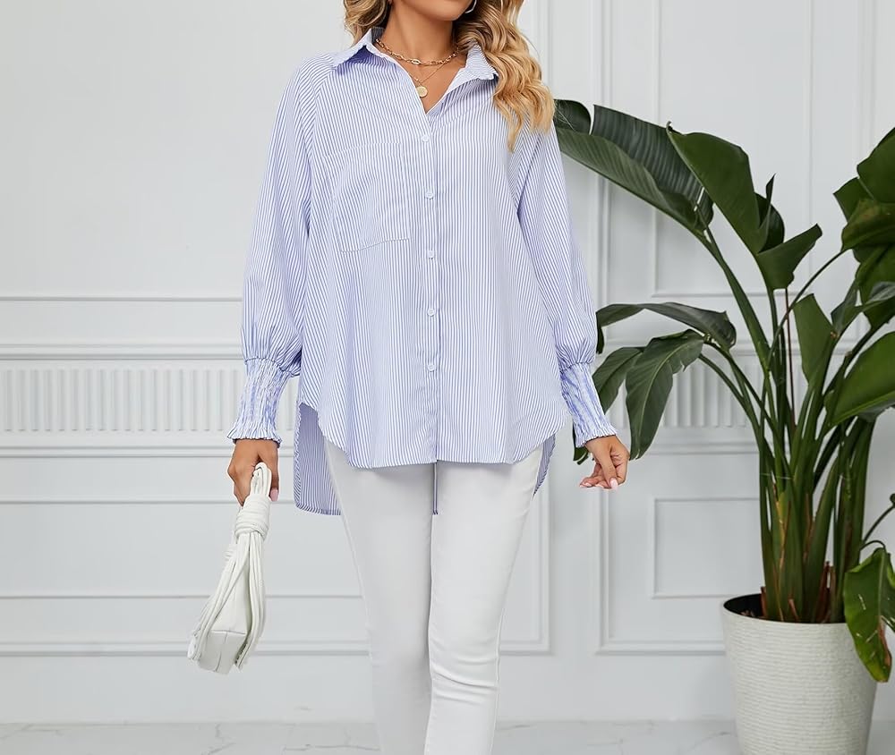 المواد: توفر هذه البلوزة ملمسًا ناعمًا وصديقًا للبشرة ويمكن ارتداؤه دون عناء لتوفير الراحة طوال اليوم. يضمن النسيج المسامي والمقاوم للتجاعيد سهولة الحركة، مما يجعله مثاليًا للارتداء مع طبقات أو للارتداء المستقل في أي موسم.