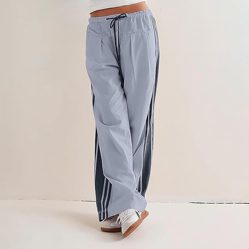 Wide Leg Sweatpants Women Striped Drawstring Fall Pants Baggy Low Rise Drawstring Sport Sweatpants with Pocket