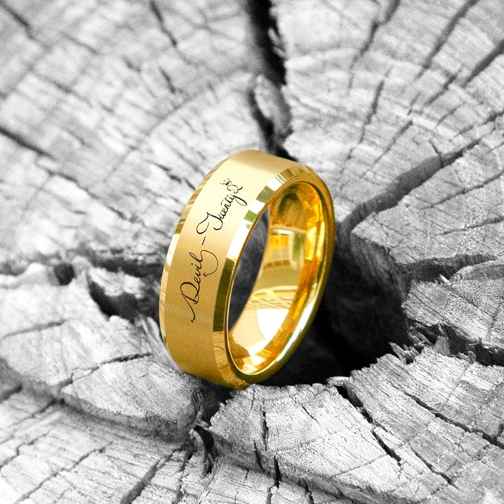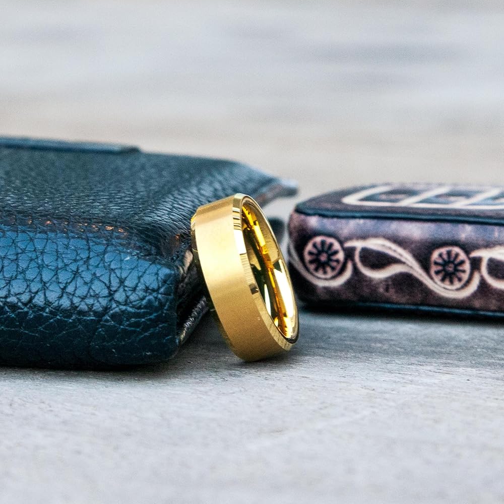 مادة متقدمة - كربيد التنجستين أصعب من الفولاذ المقاوم للصدأ والتيتانيوم، وأصعب 10 مرات من الذهب، مما يعني أن الحلقات مقاومة للخدش ومتينة؛ الغلاف الداخلي من الخشب الطبيعي مضاد للحساسية [ضمان لمدة 3 سنوات]