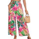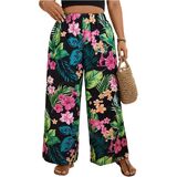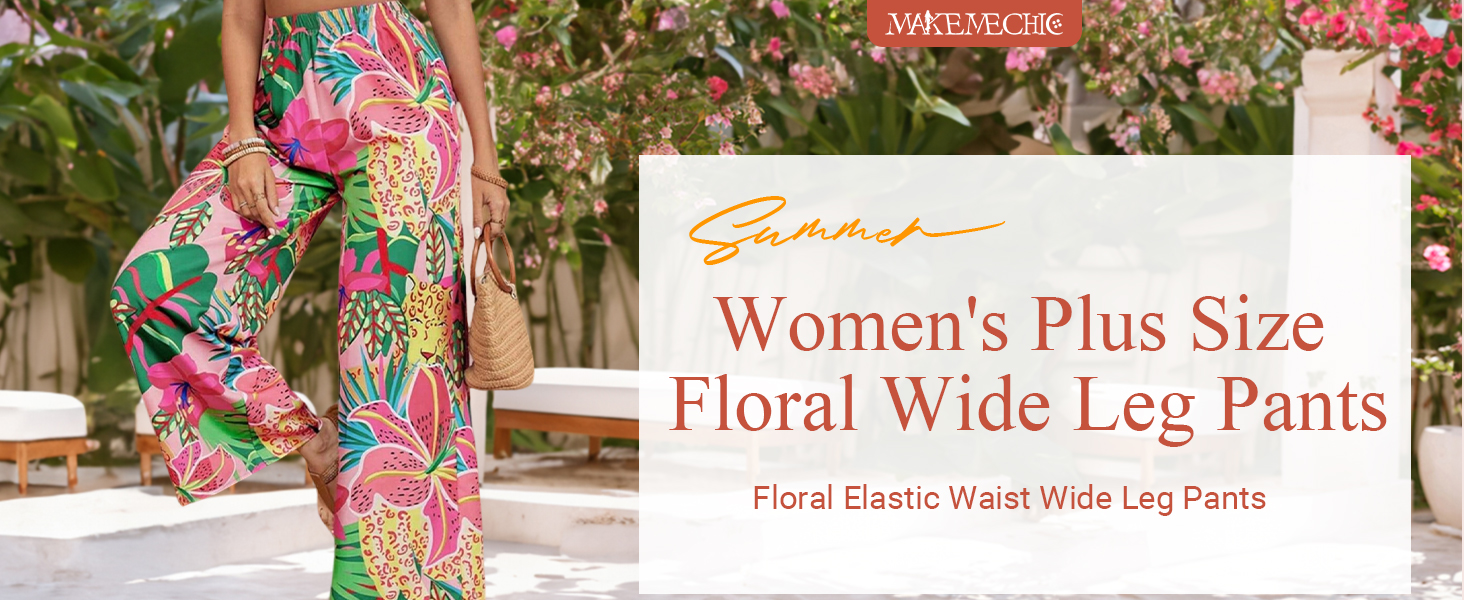MakeMeChic Women's Plus Size Floral Palazzo Pants Elastic Waist Wide Leg Tropical Print Summer Trousers