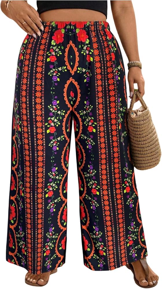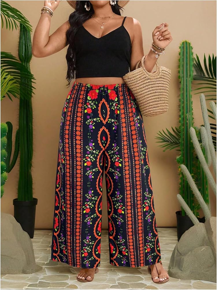 - Features: Plus size, floral print, high waist, straight leg, boho pants for women