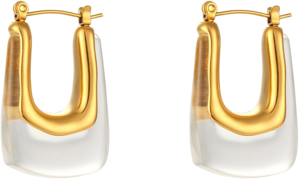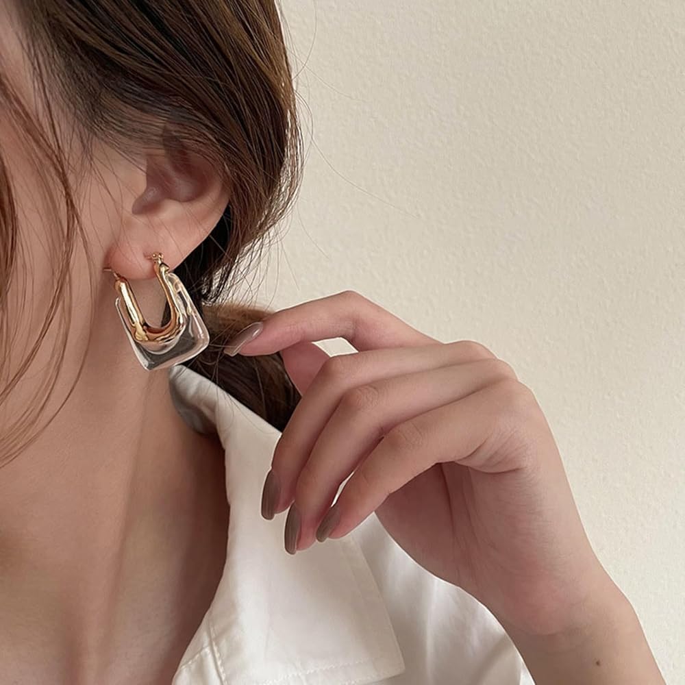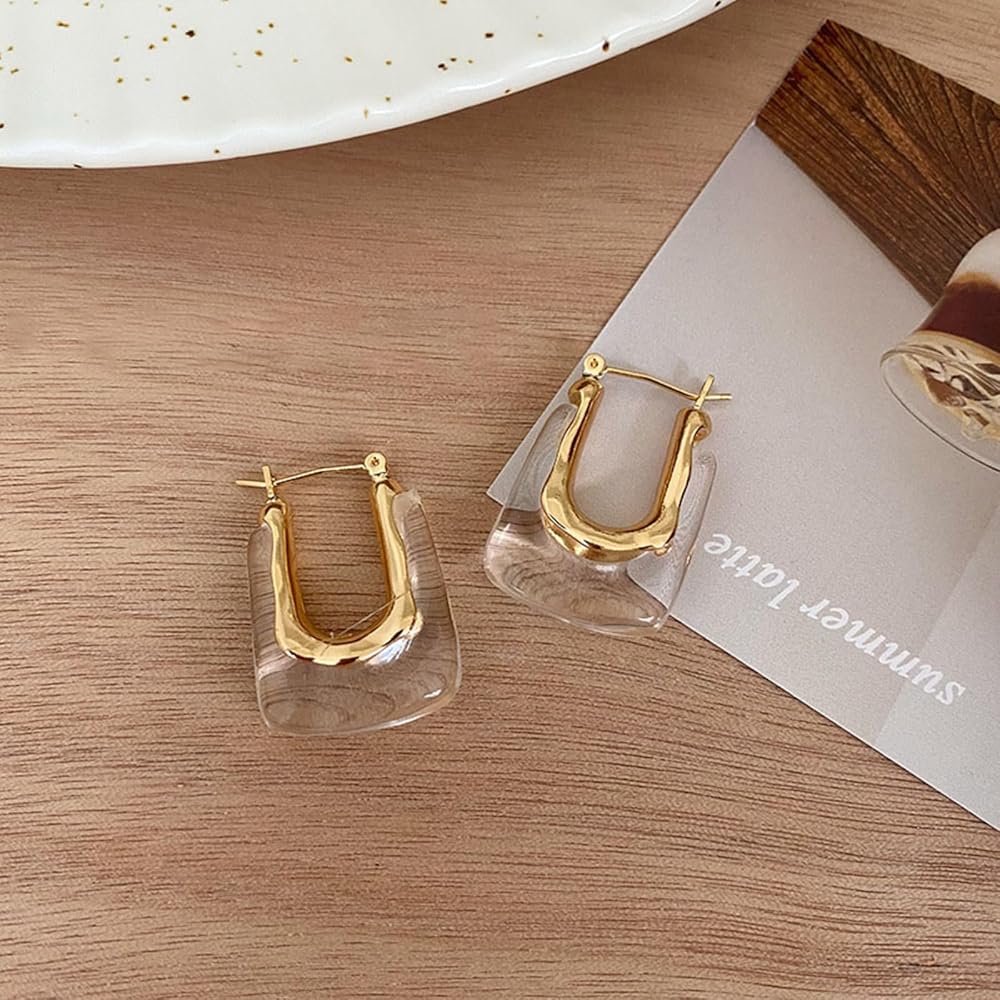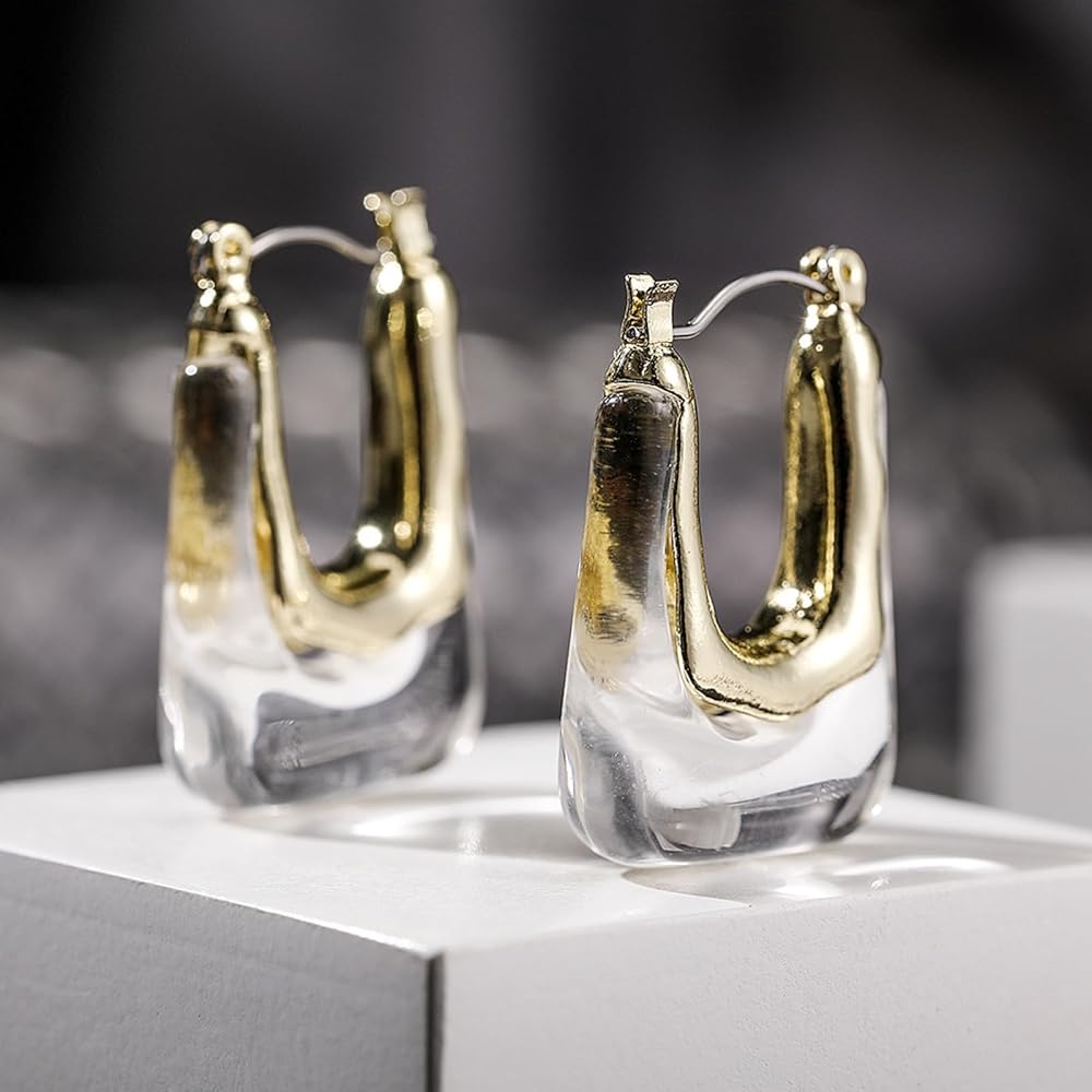 أقراط من الراتنج الشفاف: تتميز هذه الأقراط الحلقية الشفافة بتصميم دائري مع عنصر شفاف، مما يخلق مظهرًا عصريًا ورائعًا. ارتدي هذه الأقراط الشفافة المتلألئة لتتألقي في أي مناسبة