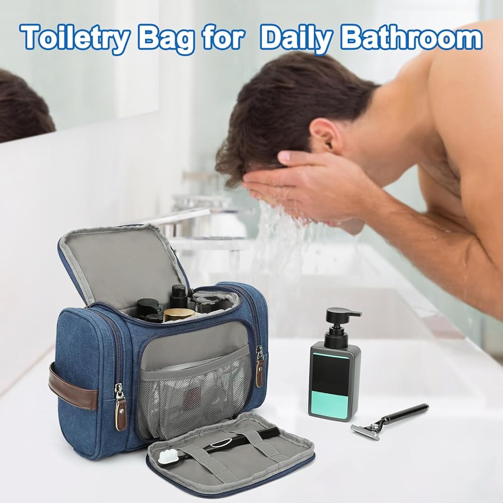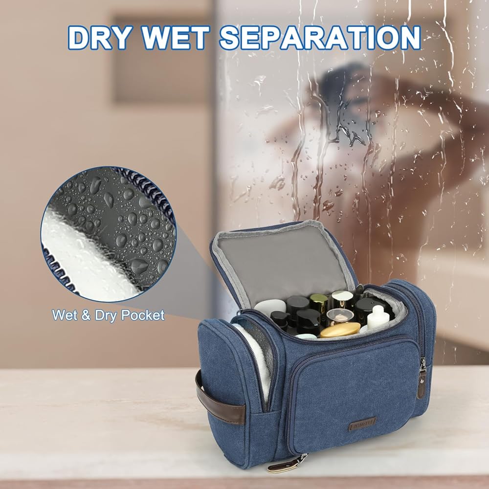 حقيبة أدوات الزينة للسفر للرجال من زومفيلت، منظم أدوات الزينة من القماش مع جيب مبلل، حقيبة حلاقة بجيوب متعددة مقاومة للماء لأساسيات الصالة الرياضية وإكسسوارات أدوات الزينة، أسود