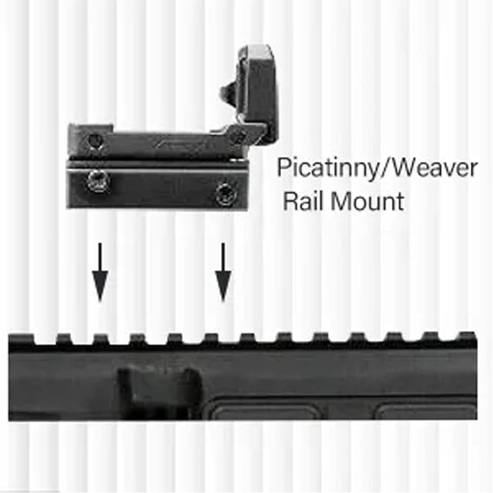 - قاعدة تثبيت السكك الحديدية بطول 110 مم من نوع Picatinny مقاس 20 مم تسمح بأي حل بصري