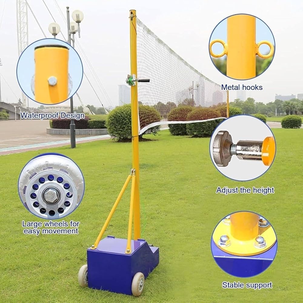 أعمدة كرة الطائرة ذات الإطار الشبكي لكرة الريشة للفناء الخلفي في الهواء الطلق وأعمدة الكرة الطائرة شديدة التحمل مع شبكة شبكة كرة الريشة الداخلية مع عجلات، 5 أقدام - 6.9 أقدام قابلة للتعديل