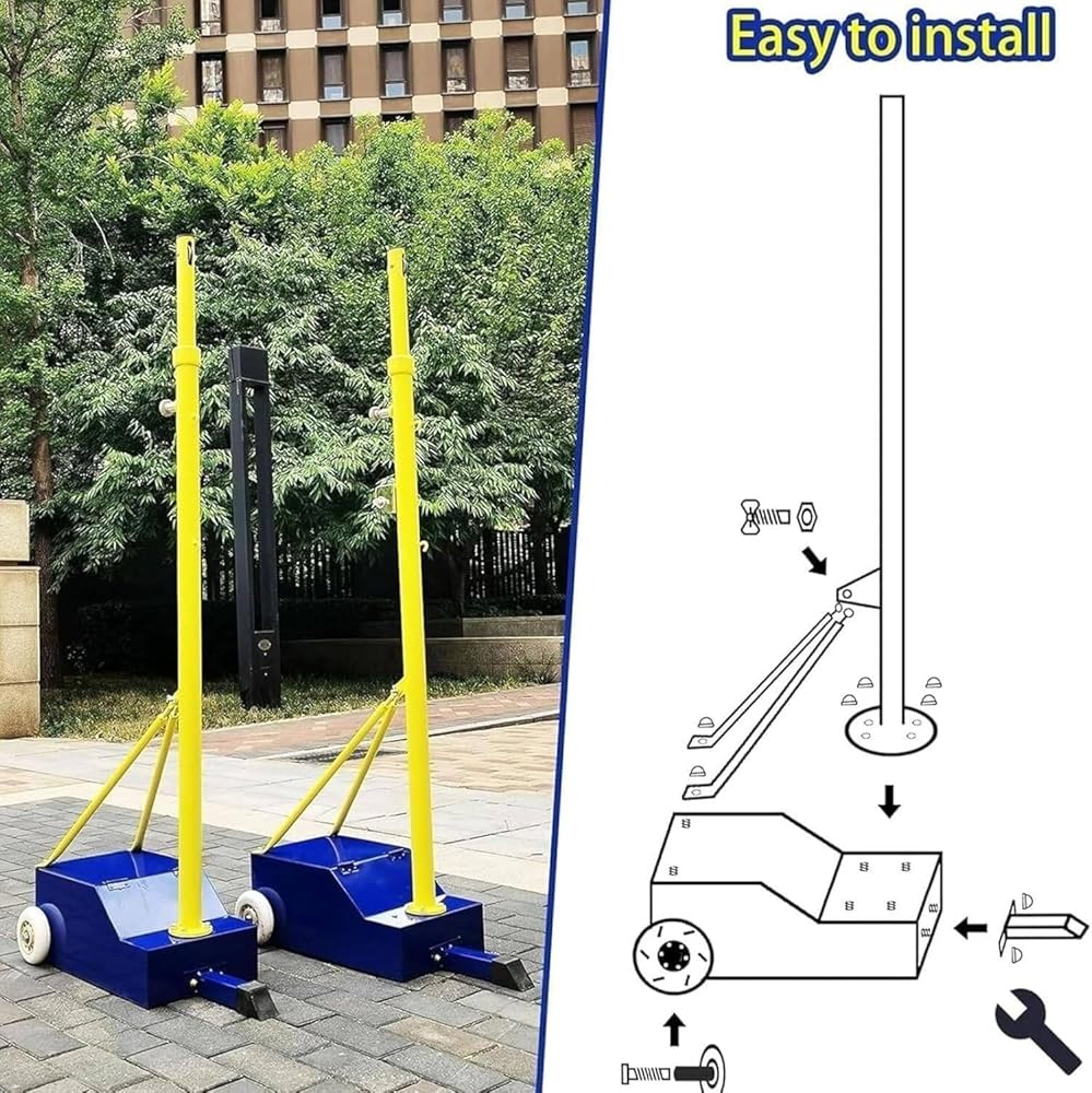 【سهلة التركيب】عمود الكرة الطائرة مجهز بعجلات ويمكن تحريكه بسهولة. لن يتلف الأرضية الداخلية. والتركيب بسيط جدًا، ومجهز بأدوات التثبيت، ولا يلزم سوى البراغي لإكماله، ووقت التثبيت قصير جدًا.