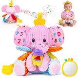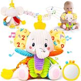 ألعاب الأطفال من 3 إلى 6 أشهر، لعبة الفيل المحشوة الموسيقية للأطفال حديثي الولادة 3 6 9 12 شهرًا، ألعاب وقت البطن ألعاب مونتيسوري الحسية 0-6 6-12 شهرًا، ورق مجعد، مرآة هدية دش موسيقى مهدئة