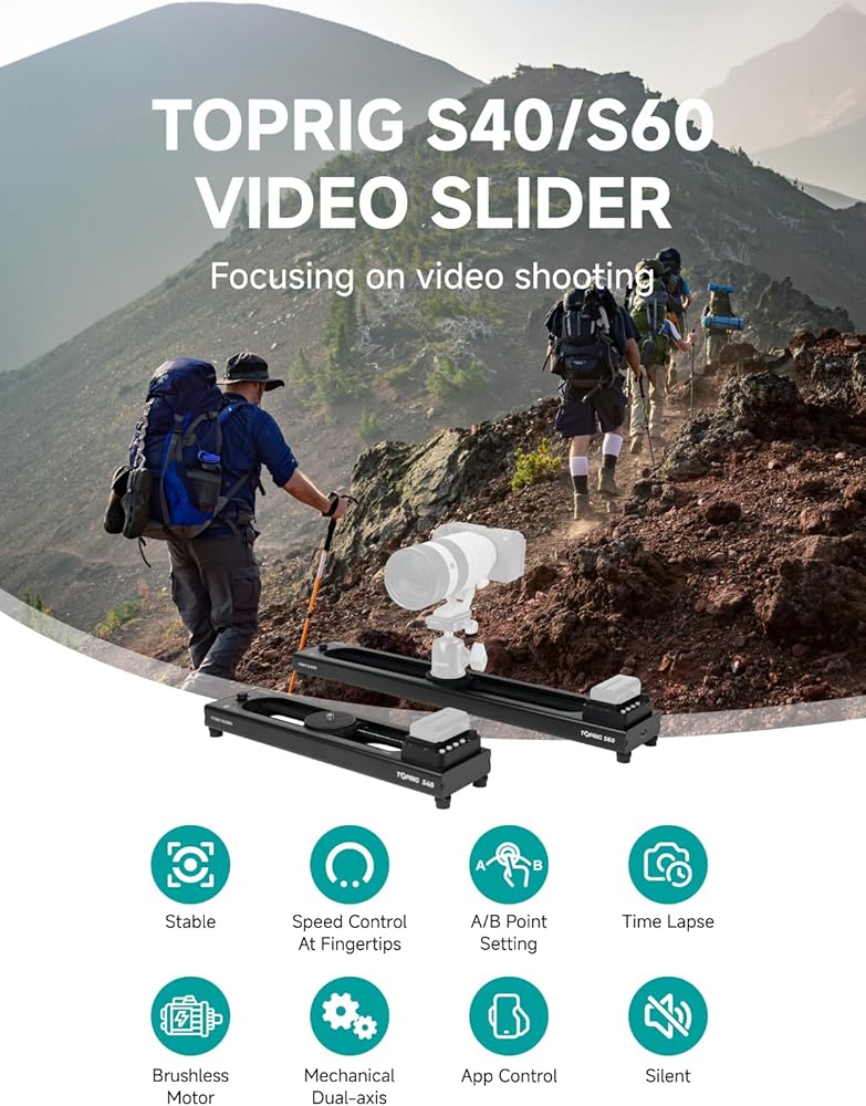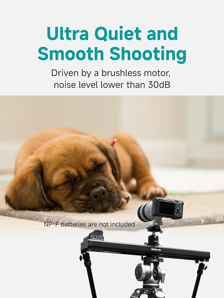محرك متدرج فائق الصمت: مصمم بمحرك متدرج فائق بدون فرش، مما يجعل منزلق مسار torig S40 دوللي أكثر سلاسة واستقرارًا. تصنيف أقل من 30 ديسيبل ديسيبل، وهو مناسب جدًا لإنتاج الفيديو، ولا داعي للقلق بشأن ضجيج الخلفية الصاخب