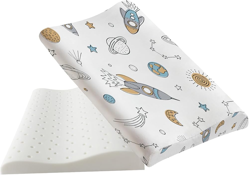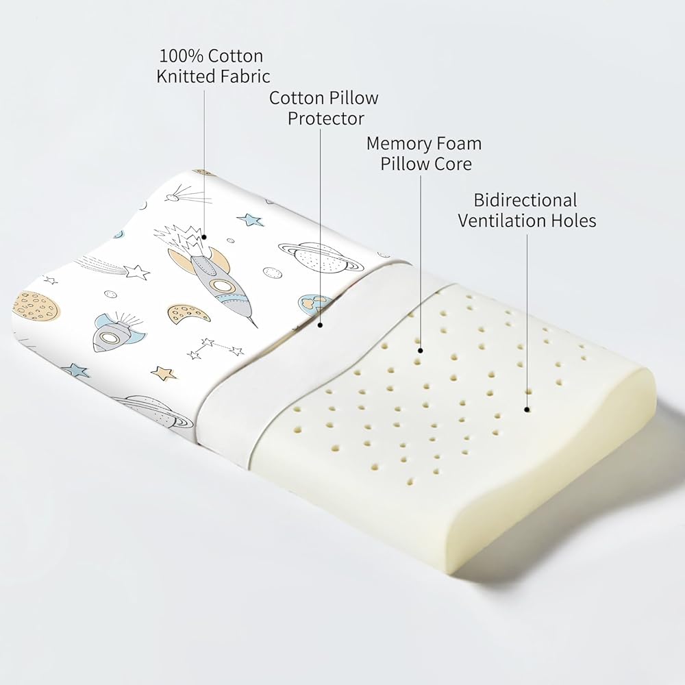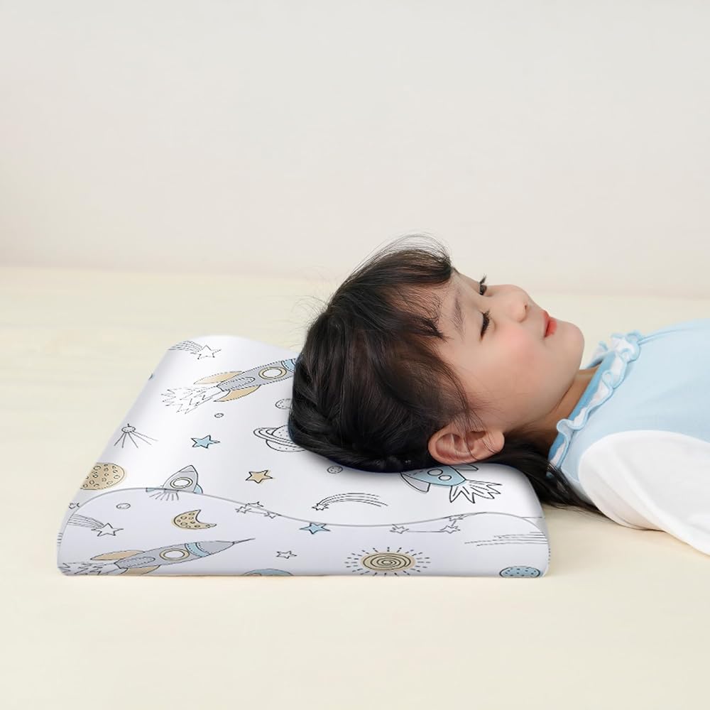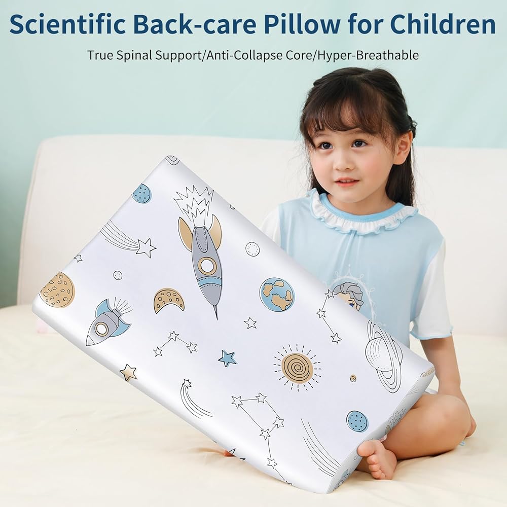 وسادة أطفال للأطفال الصغار بعمر سنتين 3 سرير للرقبة ووسائد صغيرة ووسائد للنوم وغرفة النوم وإسفنج الذاكرة الذين تتراوح أعمارهم بين 1 إلى 8 (19.6 بوصة × 11.8 بوصة × 1.5-2.3 بوصة)