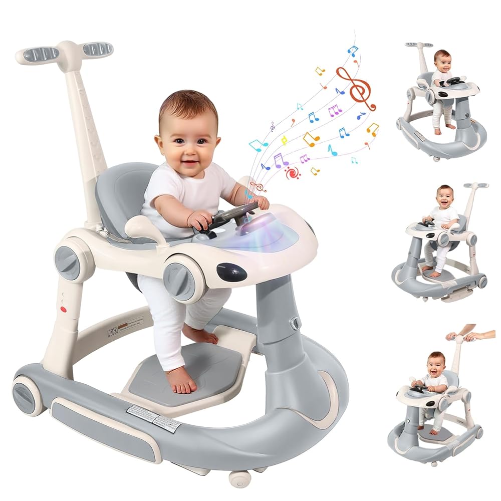 [مشاية أطفال 4 في 1] يمكن تحويل مشاية الأطفال بسهولة إلى 4 أوضاع، بما في ذلك وضع مشاية الأطفال، وضع مشاية الحصان الهزاز، وضع مشاية قفز الأطفال، وضع مشاية دفع عربة الأطفال، لتلبية احتياجات المراحل المختلفة من استكشاف الطفل ونموه معًا، مناسبة للأطفال الصغار من سن 6 إلى 18 شهرًا. مساعدتهم في تعلم المشي وتقوية عضلات ساقهم بتصميم فريد للسيارة ويبقي طفلك مستمتعًا.