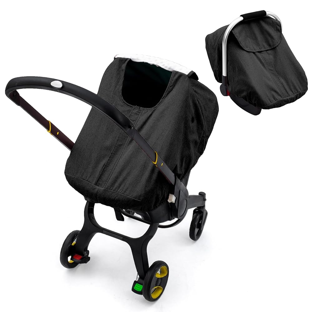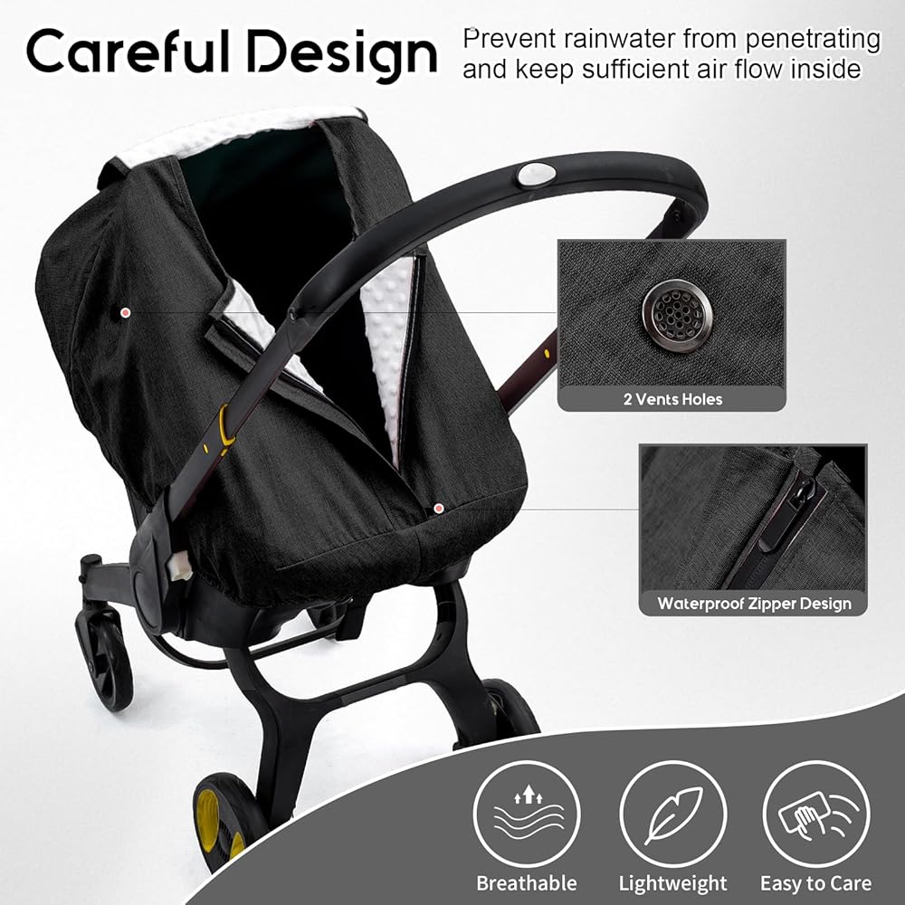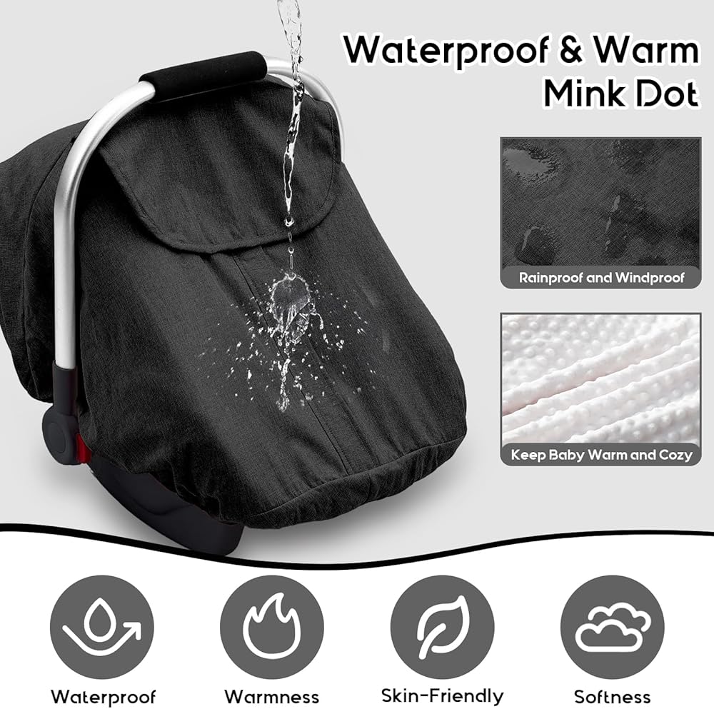 غطاء مقعد سيارة للأطفال مقاوم للماء لعربة الأطفال دونا، غطاء مقعد السيارة مع بطانة منقط من القطيفة للطقس البارد الرطب، مظلة مقعد سيارة للرضع مع تصميم إغلاق بسحاب وفتحتين، يحافظ على دفء الطفل/جافًا