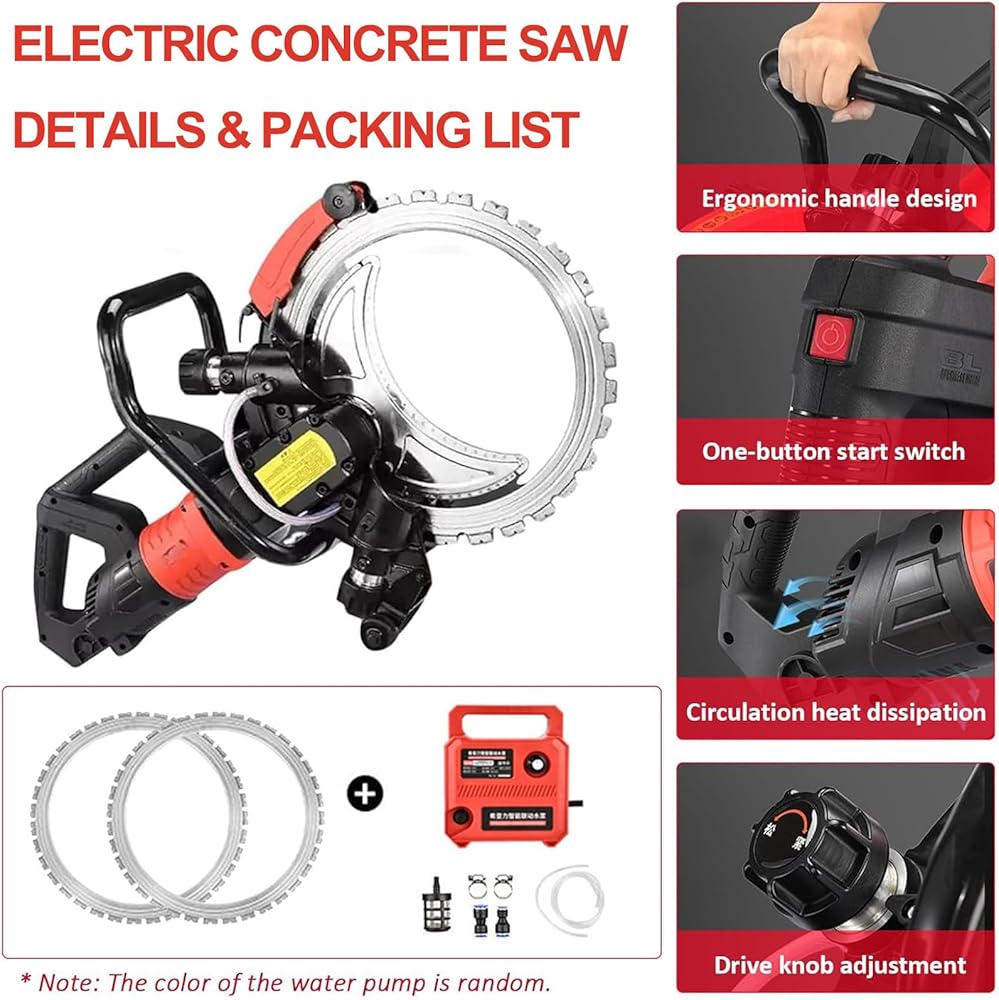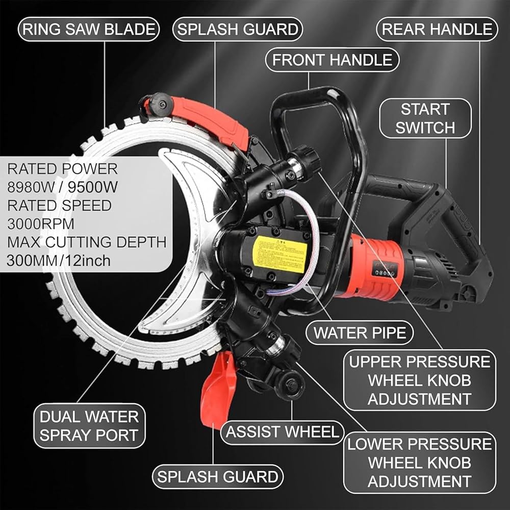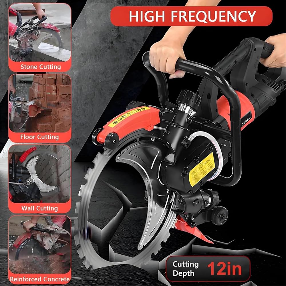 【قطع احترافي】تستخدم آلة قطع المنشار الدائري للخرسانة الكهربائية محركًا قويًا من النحاس النقي بقدرة 9500 وات/12000 وات، ومجهزة بقطعتين من شفرة المنشار الماسي بقطر 16 بوصة مع أقصى عمق للقطع يصل إلى 12 بوصة؛ مع سرعة فائقة تبلغ 3000 دورة في الدقيقة، يمكنها إكمال عملية قطع أخدود الجدار بسرعة وسلاسة؛ اعتمادًا على المادة، يمكن أن تصل سرعة القطع إلى 2.0 م/3 دقيقة