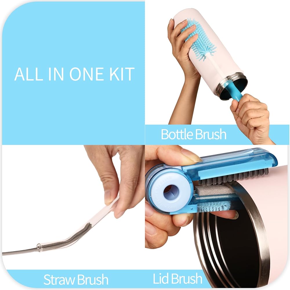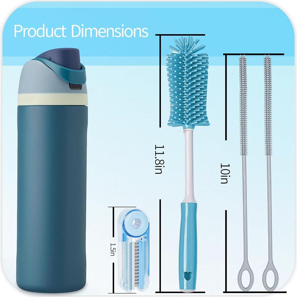 4-Piece Bottle Cleaning Kit - Includes an 11.8" Water Bottle Cleaner, two 12.6" Nylon flexible straw brushes, and a 4-in-1 cup brush - Delivering full-coverage cleaning for your go-to hydration gear. Compatible with Owala, for Hydro Flasks, for Stanley , for Yeti , tumblers, baby bottles, mason jars, and insulated canisters.