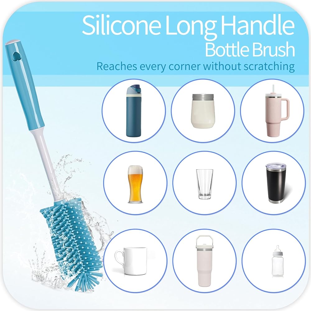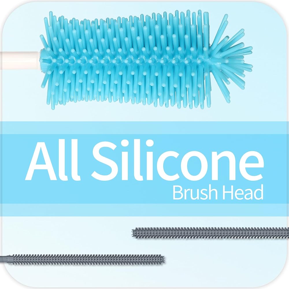 Silicone Bottle Brush with Long Handle - Made with soft, food-grade silicone for a gentle touch. Its compact bottom brush head easily reaches every corner while protecting your bottles from scratches. With the ergonomically designed handle, you can clean bottles easily and comfortably.