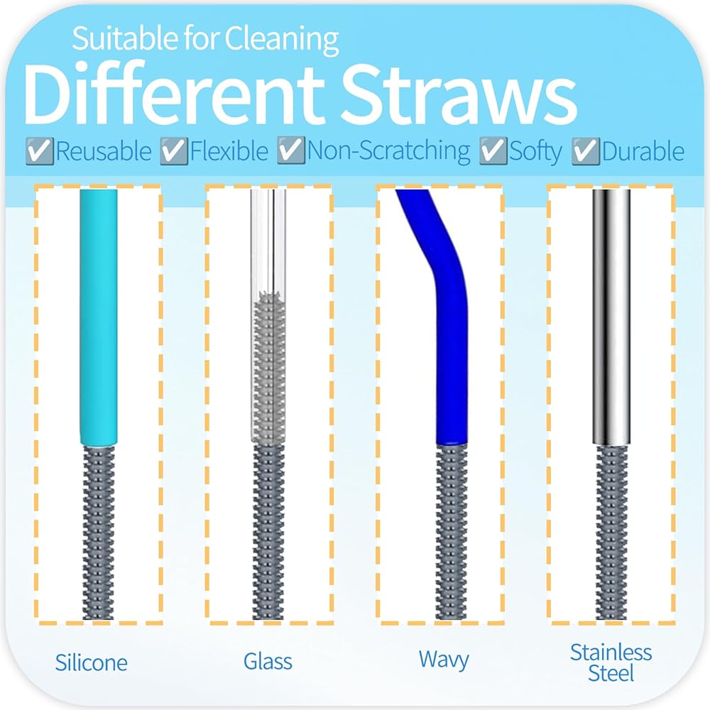 Silicone Straw Brush - The food-grade straw cleaners with flexible stainless steel cores bend freely for owala, for Stanley lids, tumbler straws, baby bottles, smoothie pipes, glass/metal tubes, and tight coils. Ergonomic grips power through residue while protecting hands