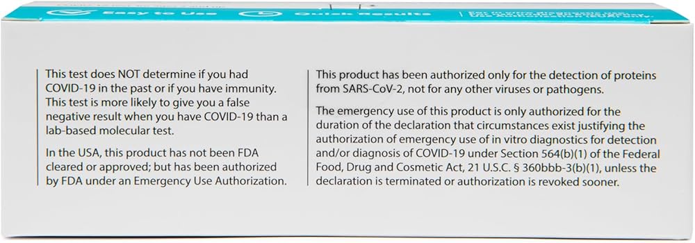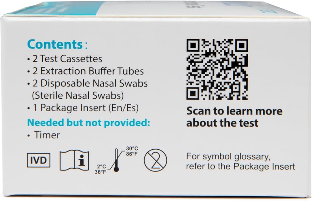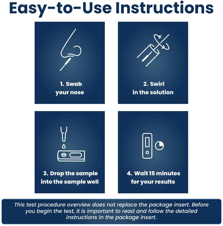 سهل الاستخدام - يتم تضمين جميع مكونات اختبار مسحة الأنف داخل الصندوق مع تعليمات خطوة بخطوة للاستخدام باللغتين الإنجليزية والإسبانية. لا توجد أعراض مطلوبة - يهدف هذا الاختبار إلى اختبار الأفراد الذين يعانون من أعراض كوفيد-19 أو لا يعانون منها. نتائج سريعة – هذا الاختبار سريع وبسيط. تتم قراءة النتيجة في 15 دقيقة