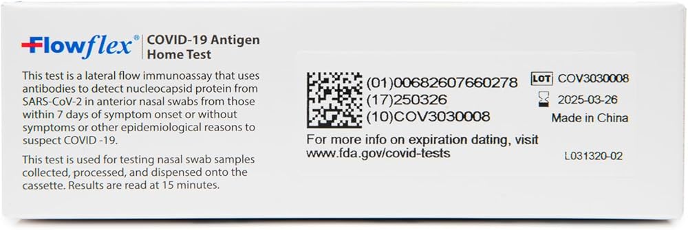 تمديد تاريخ انتهاء الصلاحية: في 15 مارس 2023، منحت إدارة الغذاء والدواء الأمريكية اختبار Flowflex COVID-19 Antigen Home Test تمديدًا آخر لمدة 3 أشهر، مما أدى إلى تمديد العمر الافتراضي للمنتج من 12 شهرًا إلى 24 شهرًا. ارجع إلى موقع إدارة الغذاء والدواء الأمريكية (FDA) لمعرفة تواريخ انتهاء الصلاحية الممتدة.