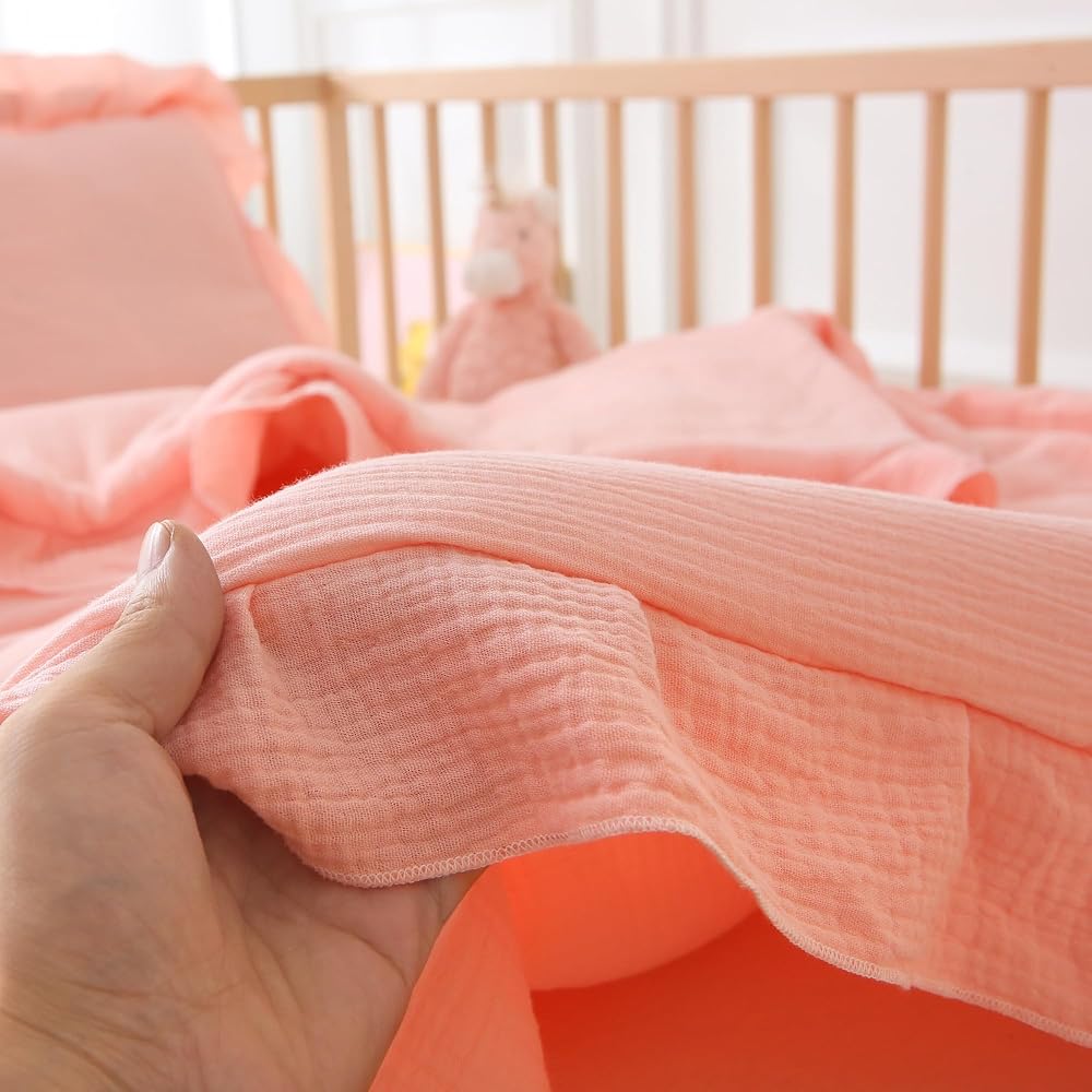 [قماش وحشو عالي الجودة] - مجموعة فراش سرير الأطفال CLoucl مصنوعة من نسيج الموسلين القطني مزدوج الطبقة، وهو ليس فقط فائق النعومة ومسامي وصديق للبشرة وخفيف الوزن وصديق جدًا لبشرة الطفل الحساسة. والمتانة، ليس من السهل أن تتلاشى، ولا تتكدس، مع نمو استخدام الوقت، ولكنها أكثر نعومة وراحة. لحاف سرير الأطفال محشو ببديل سفلي يحتوي على 20% من ألياف الصويا، وهو الوزن المثالي للحفاظ على راحة الطفل طوال العام.