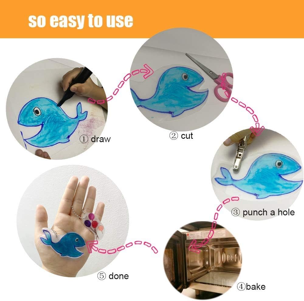 • 5. ما عليك سوى التلوين والقص والثقب والخبز والانكماش. ابتكر فنًا منكمشًا بسهولة وأظهر إبداعك بشيء رائع وسهل الاستخدام!