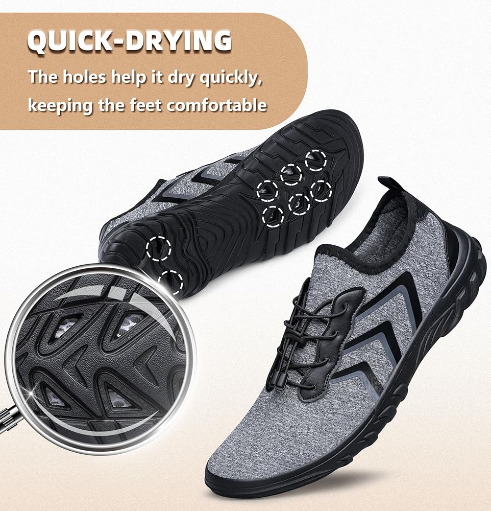 • سريع الجفاف: مصمم بفتحات مسامية وصرف، هذه الأحذية المائية تجف بسرعة، مما يحافظ على راحة قدميك