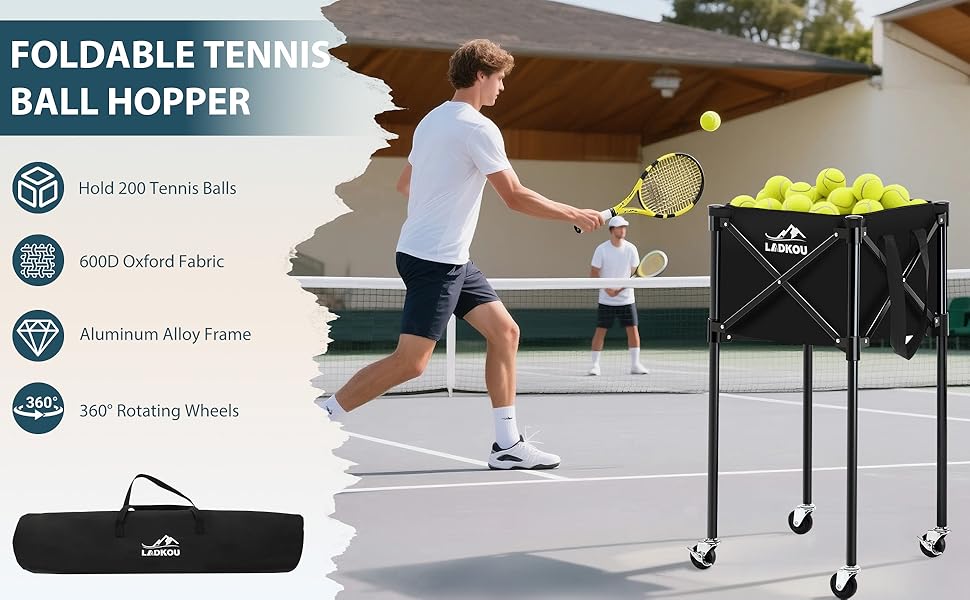 【شريكك في تدريب التنس】توقف عن الانحناء والمطاردة وابدأ التدريب. تساعدك سلة كرة المخلل المحمولة هذه على تحقيق أقصى استفادة من كل دقيقة في الملعب. عربة كرة التنس متعددة الاستخدامات هذه ليست مخصصة للتنس فقط، بل يمكنها بسهولة تخزين ونقل مجموعة واسعة من الكرات الرياضية، بما في ذلك كرات المخلل والبيسبول ومكوكات كرة الريشة وكرات بينج بونج والكرات اللينة.