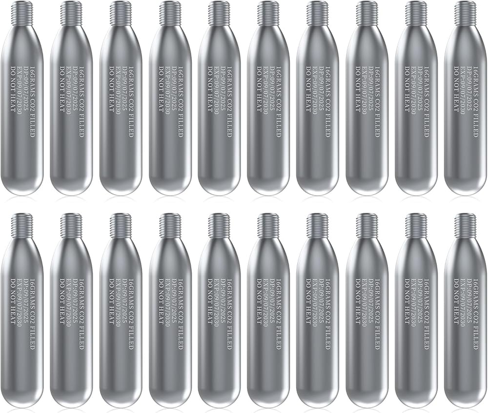 ثاني أكسيد الكربون النقي والبنية الممتازة: مملوءة بثاني أكسيد الكربون النقي بنسبة 99.99% ولا تحتوي على إضافات ضارة، كل خرطوشة مصنوعة من خيوط دقيقة ومواد متينة. وهذا يضمن نفخًا خاليًا من التسرب ويساعد على حماية رأس النفخ، مما يطيل عمر معداتك.