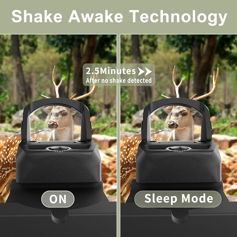 • 【Shake Awake Red Dot 】تتميز ميزة رؤية النقطة الحمراء الصغيرة بتقنية Shake Awake بإطالة عمر البطارية، حيث تدوم حوالي عامين على البطارية، ولا داعي للقلق بشأن عمر البطارية.