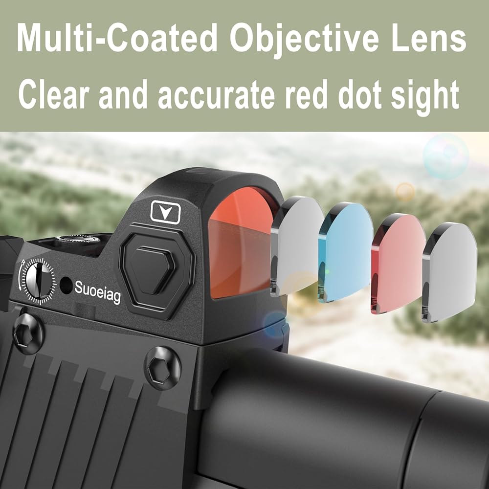 • 【عدسات متعددة الطبقات】تستخدم بصريات النقطة الحمراء الصغيرة من Suoeiag عدسات متعددة الطبقات توفر صورًا واضحة تمامًا. ويمكن للمشهد المنعكس أن يقلل الوهج ويجعل عينيك أكثر راحة.