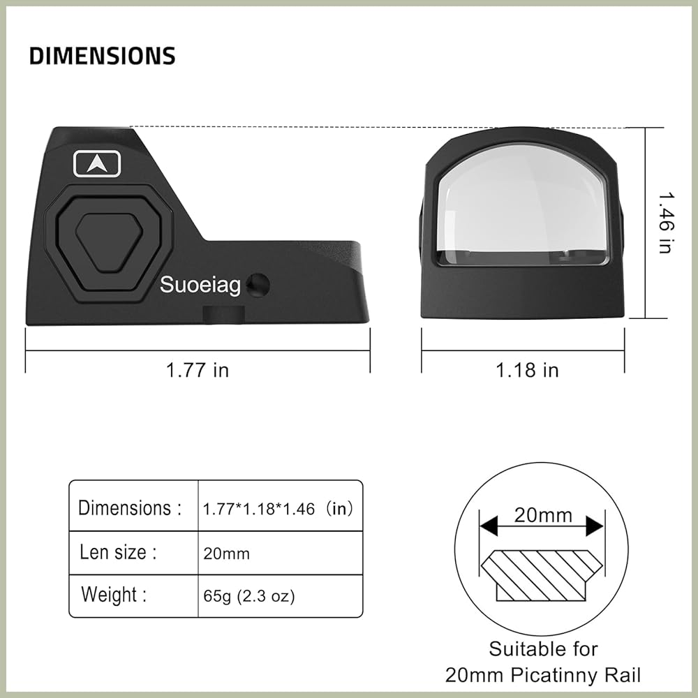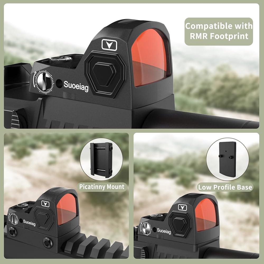 • 【التوافق العالمي 】 النقطة الحمراء الصغيرة Suoeiag هي مشاهد نقطة حمراء RMR للمسدسات المتوافقة مع بصمة RMR. يأتي مع قاعدة picatinny وقاعدة منخفضة المستوى.
