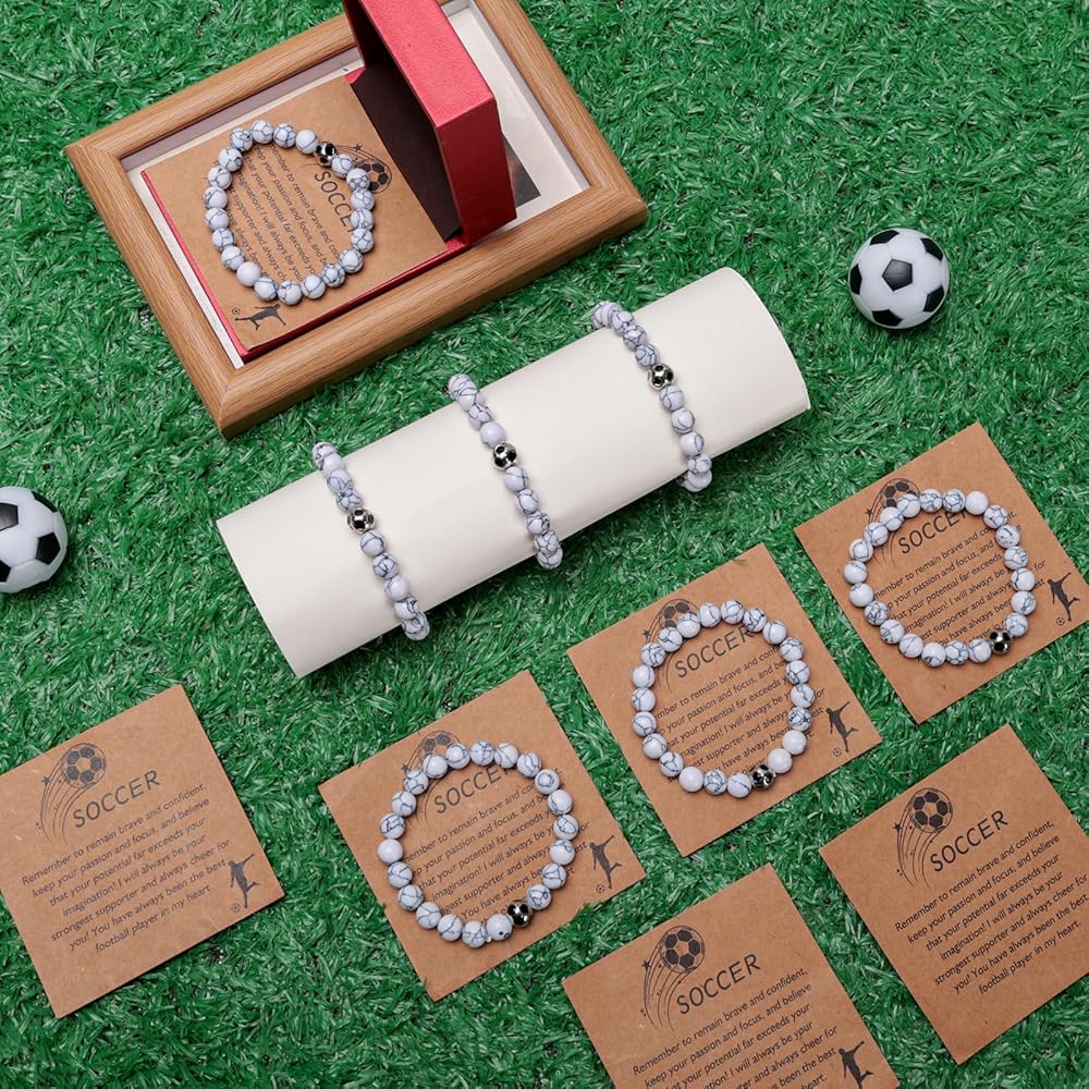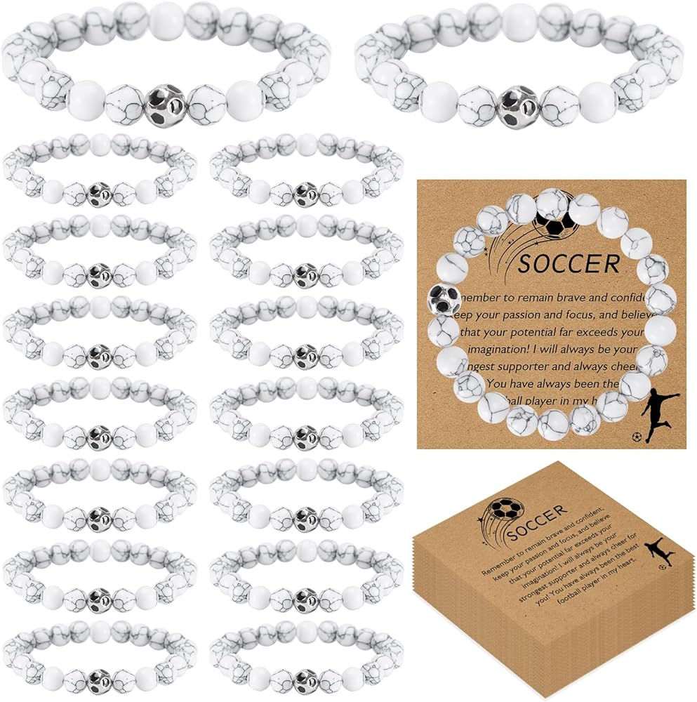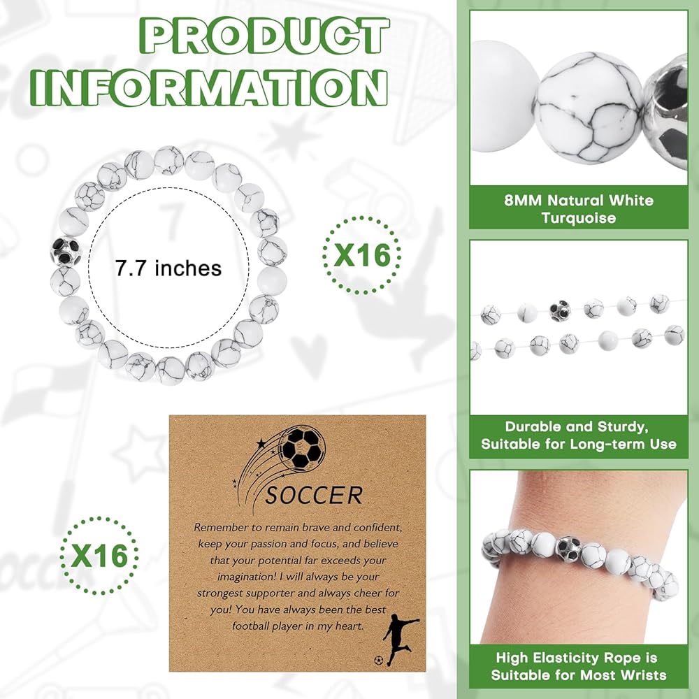 16 Sets Softball Soccer Volleyball Bracelets Sport Charm Bracelets Team Gifts Natural White Turquoise Beaded Bracelet with Inspirational Card for Sport Player Team Birthday Graduation Party Favors