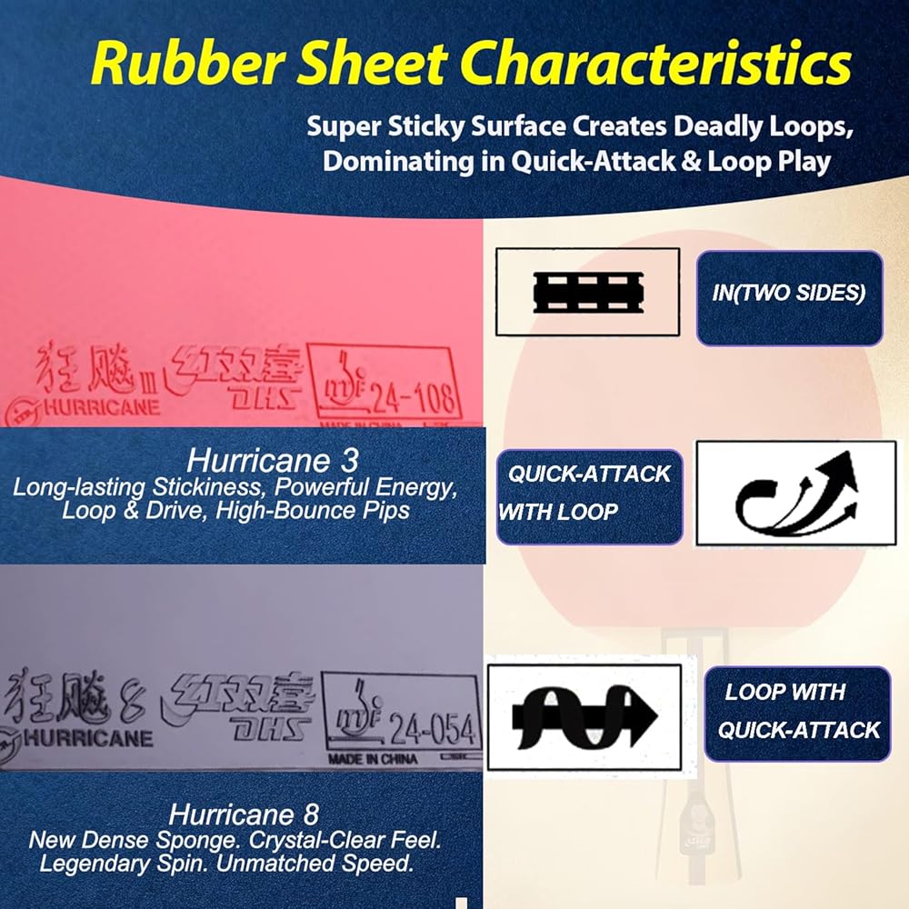• Optimized for Offensive Dominance:Engineered for aggressive players. The sticky rubbers work together to deliver powerful loops, smashes, and counter-drives for a competitive edge.