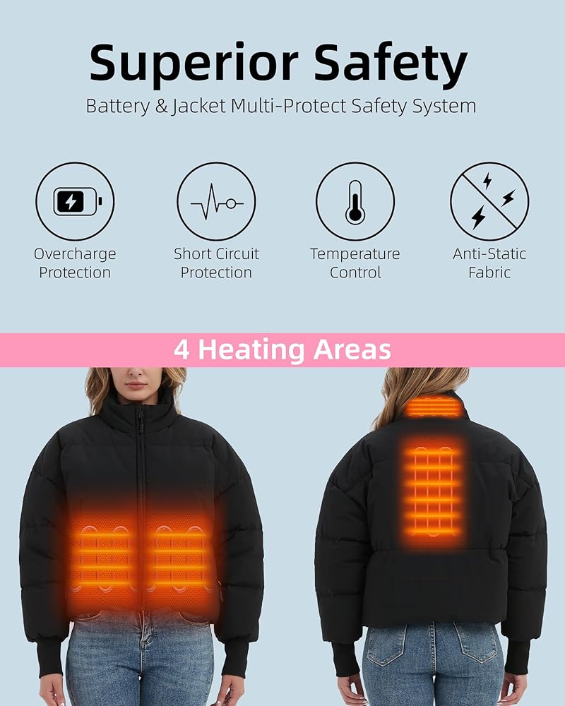 Safety-First and Easy Care: Embrace the warmth without worry. Safety takes precedence with our jacket's battery pack and heating system, meticulously equipped with features like overheat protection and intelligent power-off functions. Experience a secure, carefree winter with every delightful moment of warmth. Machine washable.