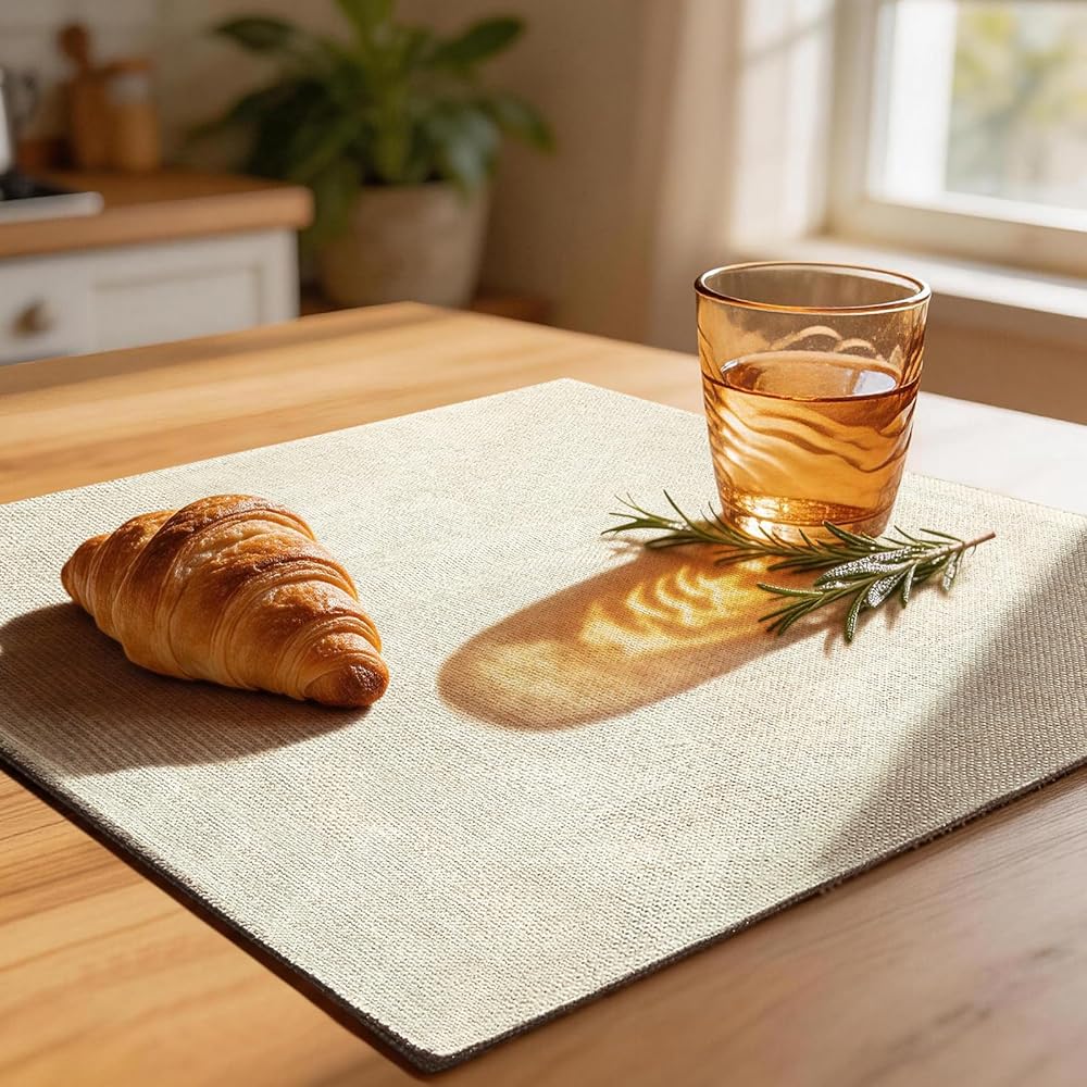 [طبقات مزدوجة] يحتوي كل مفرش أطباق على طبقات مزدوجة وكلا الجانبين قابلان للاستخدام. سمكها مناسب لحماية الطاولة من الأطباق الساخنة والبقع والخدوش وبعض قطرات الماء المنسكبة من أدوات المائدة. ليست مقاومة للماء.