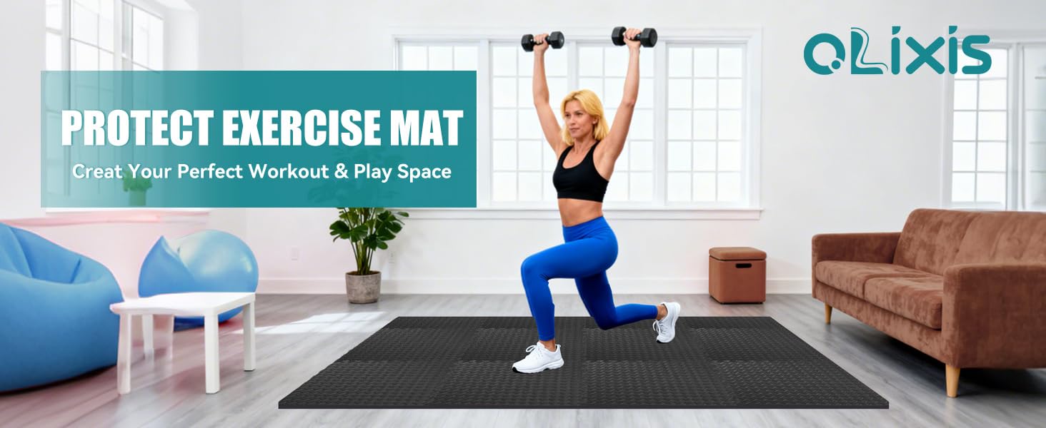 بلاط أرضيات إسفنجية متشابكة من OLIXIS، سجادات أرضية رياضية سميكة غير قابلة للانزلاق بسمك 1/2 بوصة لصالة الألعاب الرياضية المنزلية، سجادات أرضية المرآب واقية من بلاط غرفة التمارين لرفع الأثقال وتمارين القلب، 36 قطعة