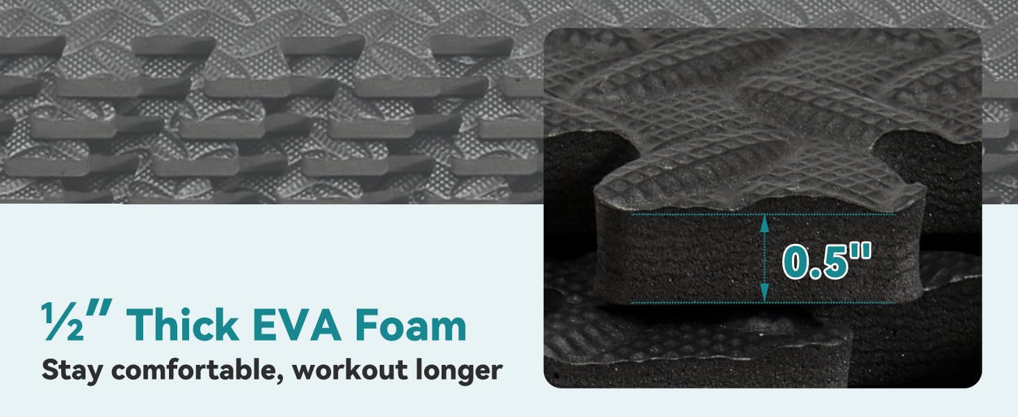 إسفنج عالي الجودة: إسفنج EVA عالي الكثافة يوفر دعمًا ووسادة ممتازين. بديل ممتاز لسجادات صالة الألعاب الرياضية المطاطية.