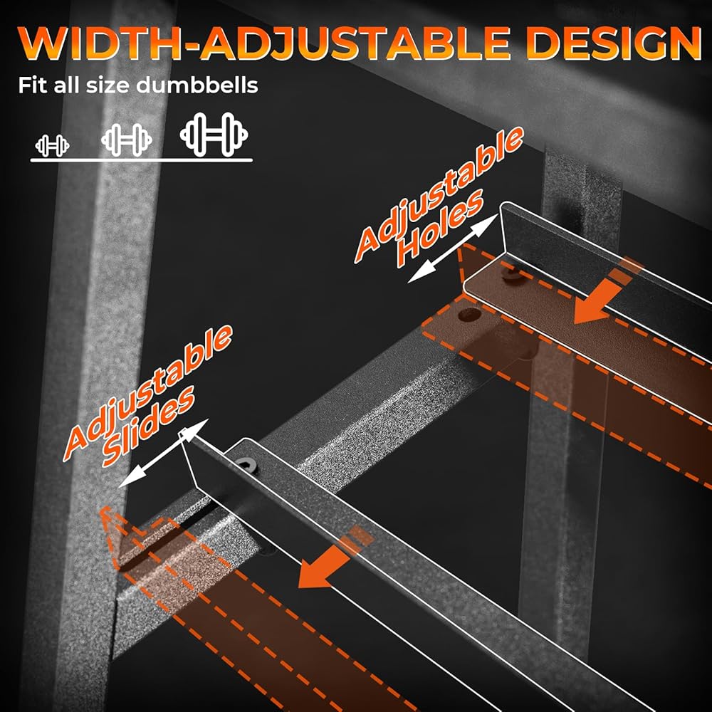 • 【يناسب جميع مقاسات الدمبل】مع التصميم القابل للتعديل للعرض، فإن حامل الوزن المكون من طبقتين للدمبل يناسب أحجام الدمبل المختلفة ويجعل الوصول إلى الدمبل أسهل. كما أن تصميم الأنبوب الفولاذي على شكل حرف L يحافظ على الدمبل في مكانه، مما يمنعها من السقوط أثناء الاهتزاز أو تحريك رف تخزين صالة الألعاب الرياضية المنزلية.