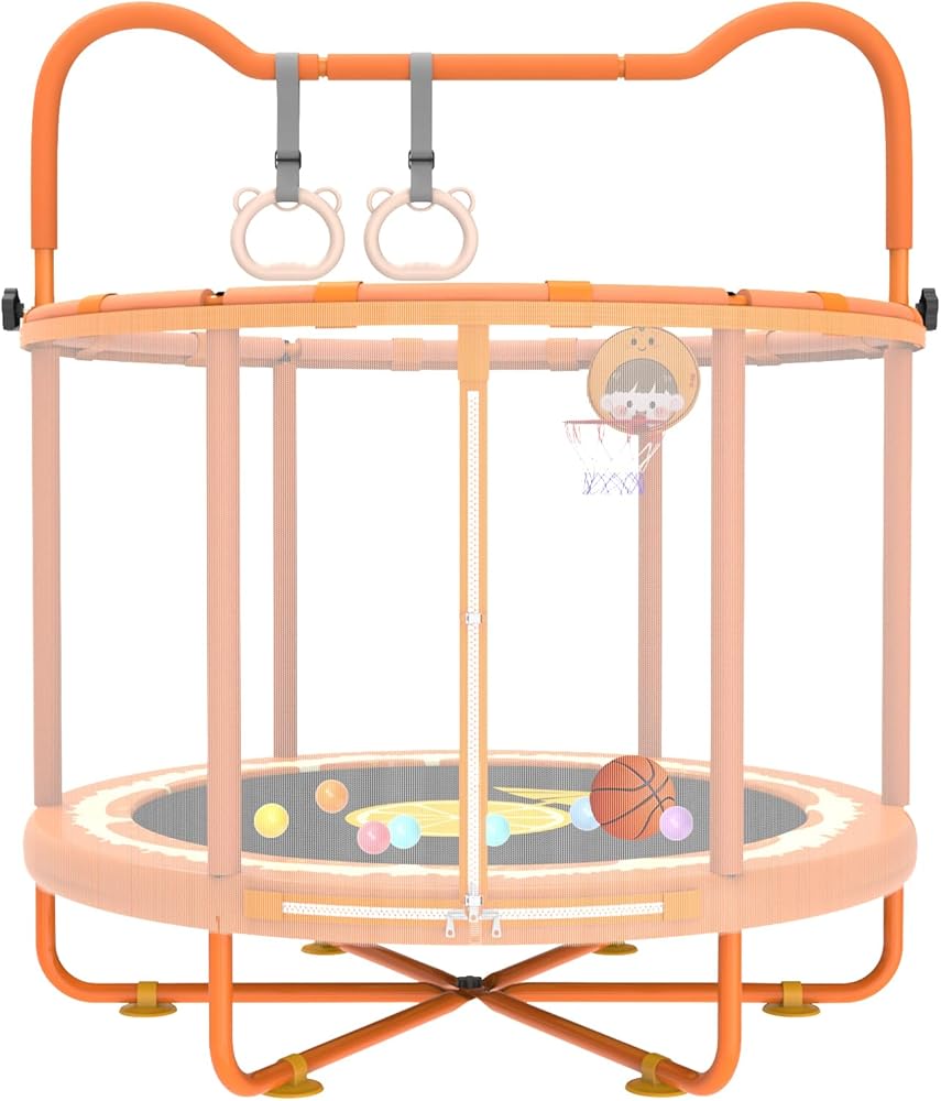 Gardenature 60 "أطفال الترامبولين في الأماكن المغلقة، 5ft طفل صغير الترامبولين مع طوق كرة السلة، شريط الجمباز، خواتم، ألعاب عيد الميلاد هدايا عيد ميلاد للفتيات الأولاد الذين تتراوح أعمارهم بين 3-8