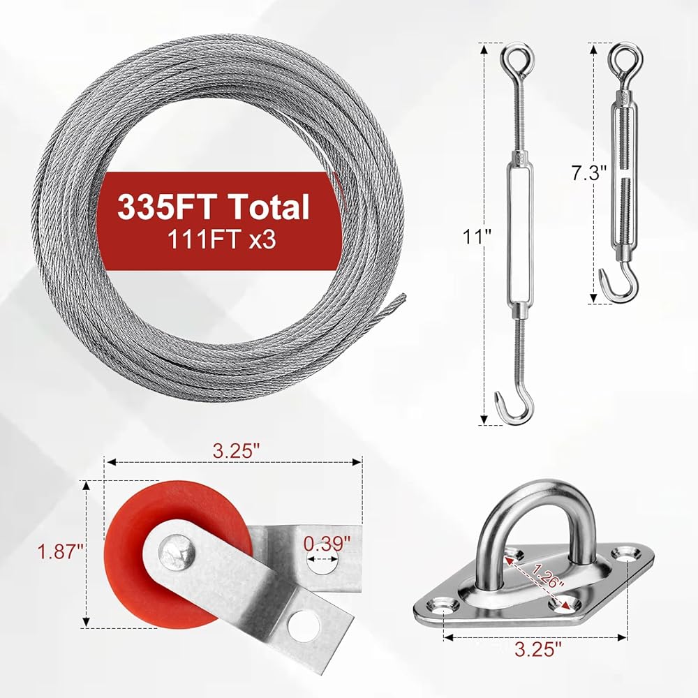 [حبل أسلاك الفولاذ المجلفن] يتميز حبل الأسلاك الفولاذية المجلفنة بطول 236 قدمًا (المقطع مسبقًا إلى 3 أقسام بطول 79 قدمًا) ببنية قوية مقاس 7 × 7 بقطر 5/32 بوصة. إنه ناعم ومقاوم للاهتراء ومقاوم للتآكل ويتميز بقوة شد قوية لتحمل تأثيرات الكرة القوية.