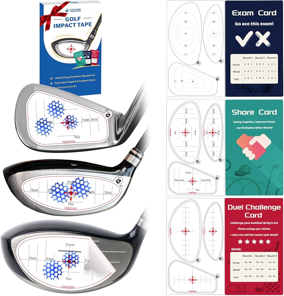 شريط تأثير الجولف - إصدار 2025 للتدريب المبتكر ومعركة الجولف - ملصقات وجه النادي للسائقين والمكاوي والأخشاب - تعليقات فورية على التأرجح، ممارسة تفاعلية، هدية رائعة للجولف للرجال والآباء