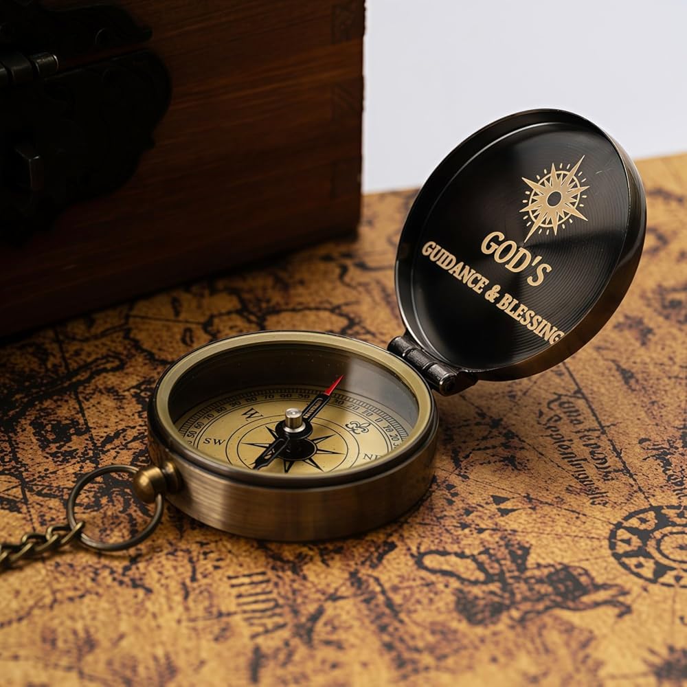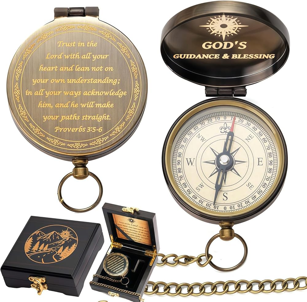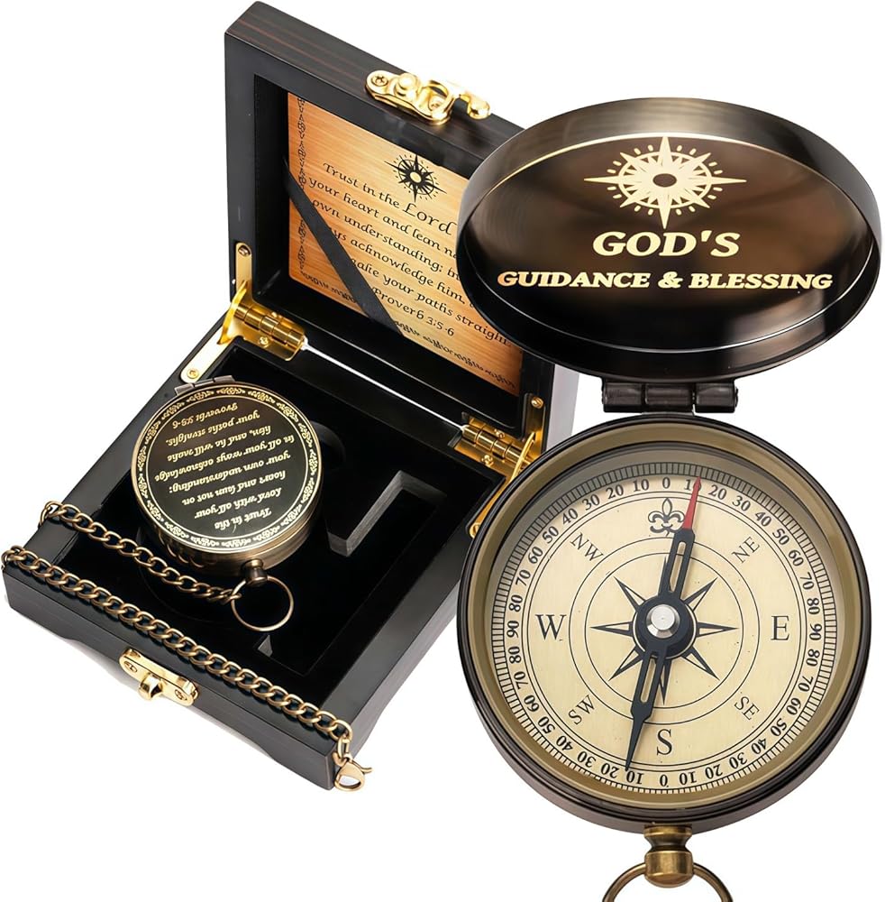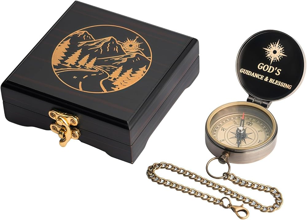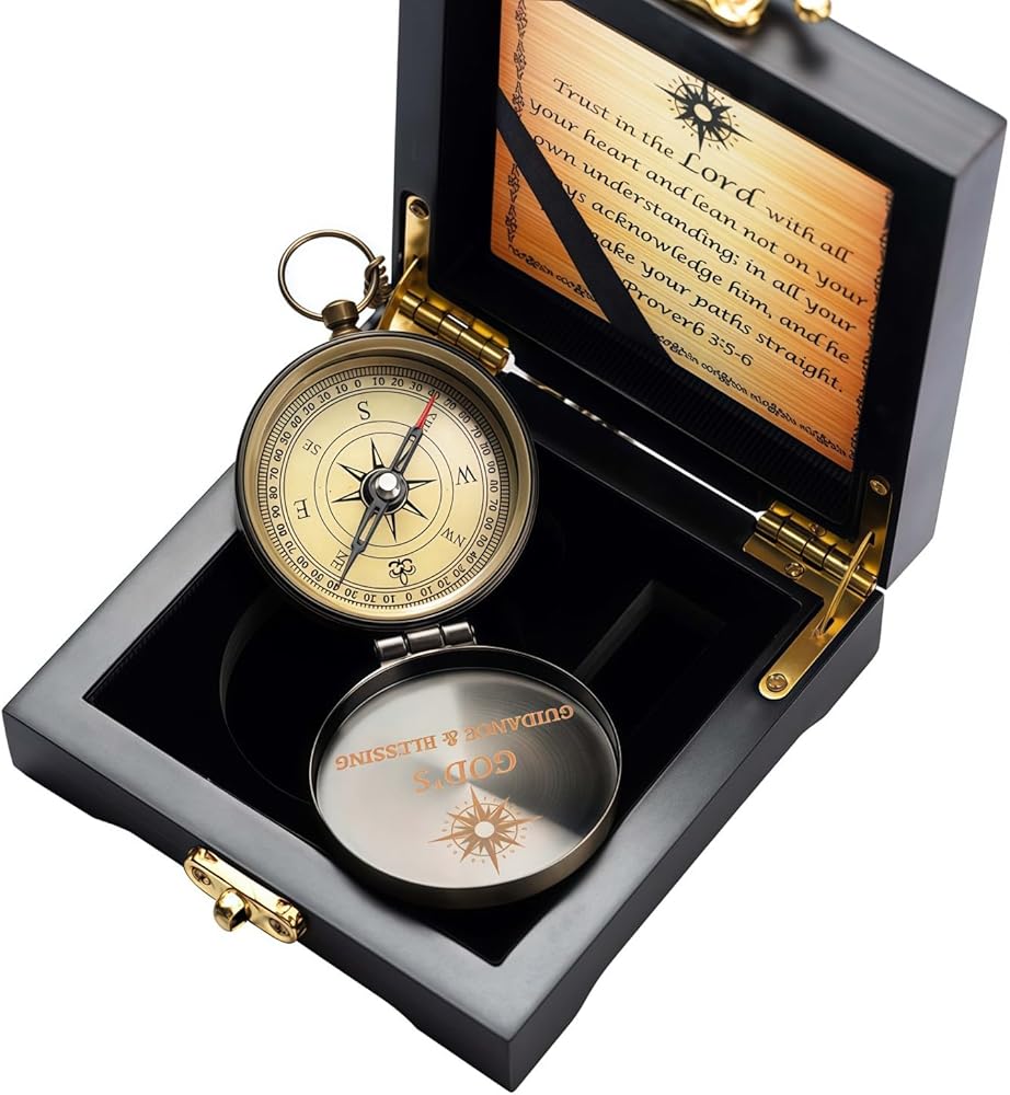 دليل الله وبوصلة البركة، الثقة في بوصلة الرب، تحية صندوق خشبي، هدية ملهمة للرجال، هدايا معمودية للأولاد المسيحيين، يوم التخرج مع صندوق خشبي
