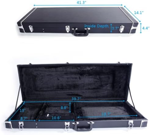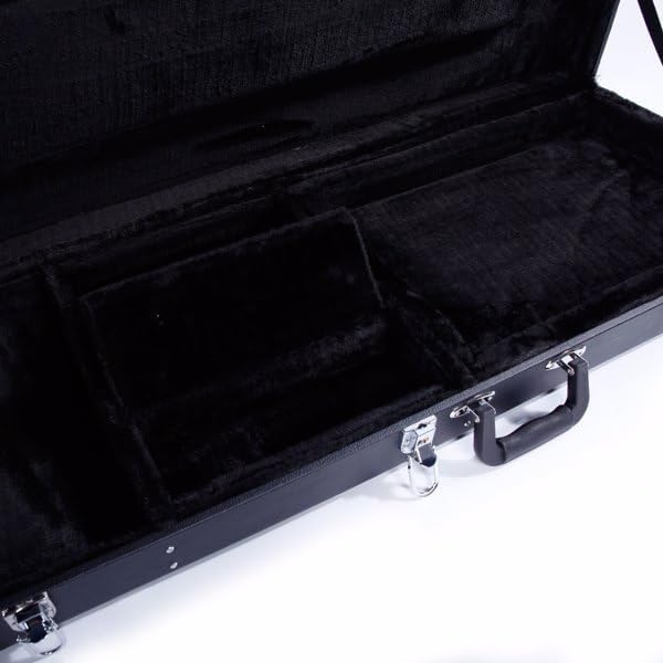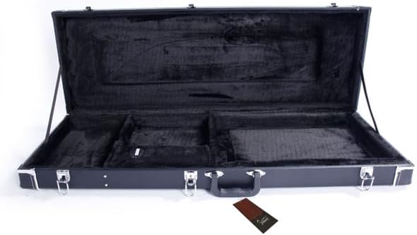 Every musician deserves peace of mind when carrying their instrument. This premium hard case is crafted with durable wood, leather, and plush to protect your electric guitar on the road or at home. With lockable latches, reinforced bumpers, and cushioned support for the neck and bridge, it ensures safety at every step. A roomy storage compartment keeps your essentials close, while the sleek square black design makes you arrive prepared and in style.