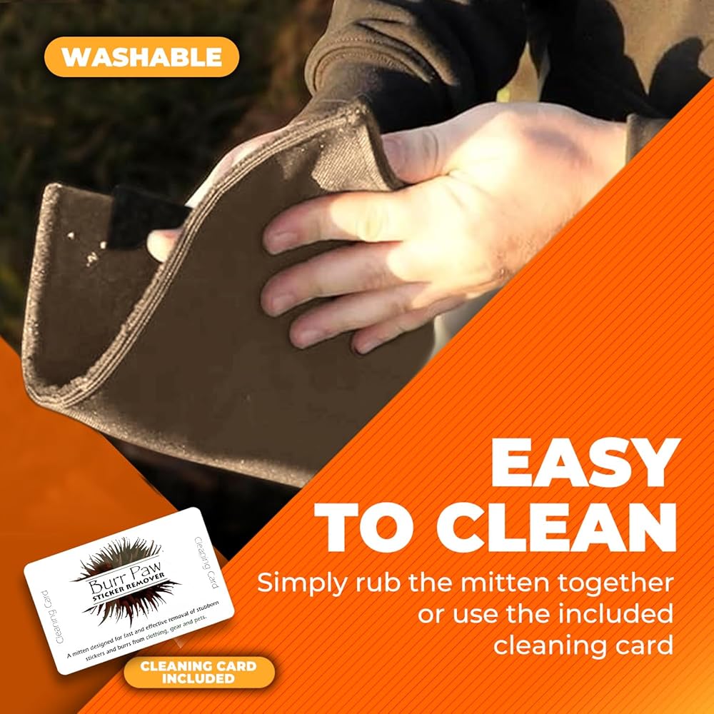 EASY TO MAINTAIN - After rubbing the affected area, use the cleaning card included to scrape larger stickers off the mitten. Reusable in the field or at home to keep gear, pets, and clothing clean.