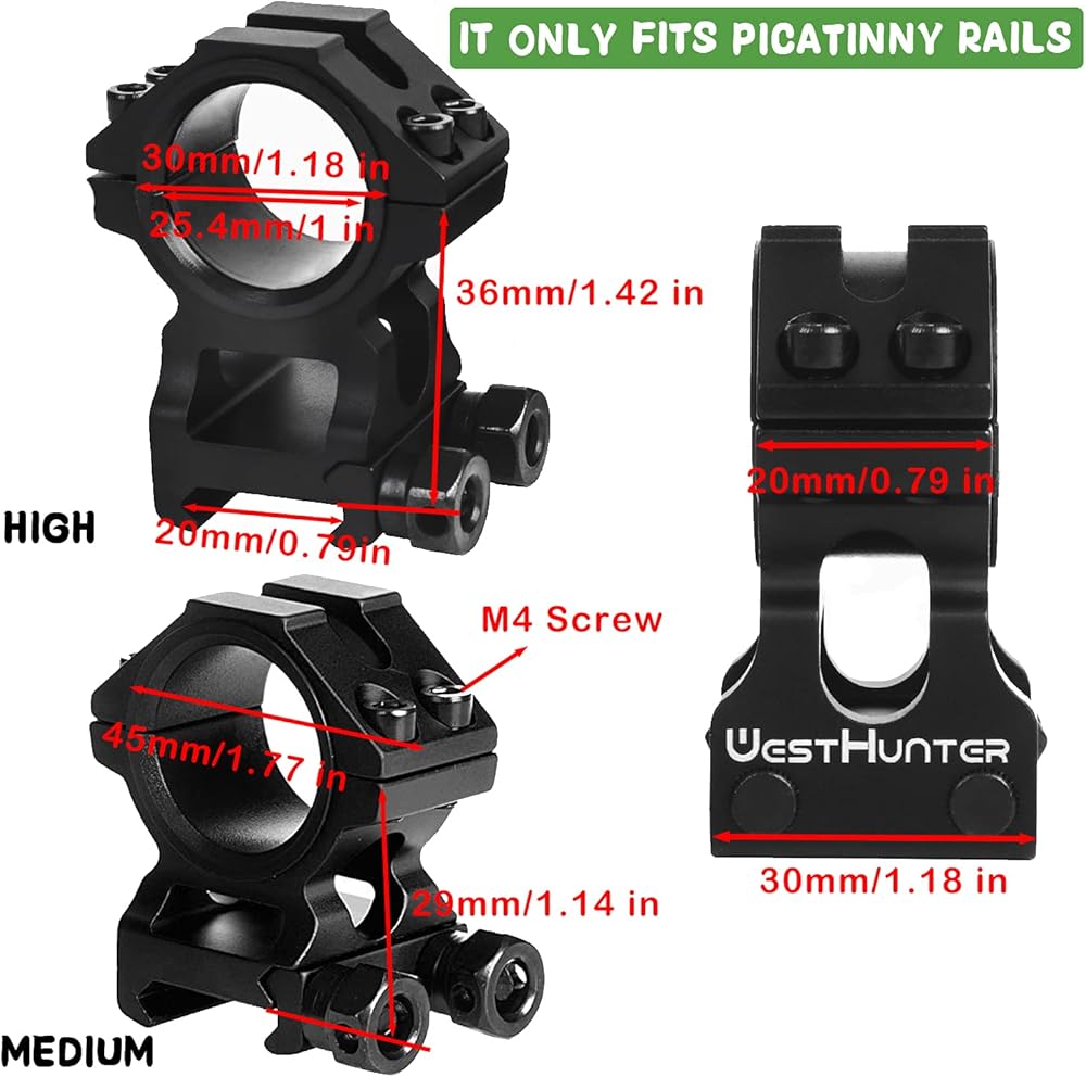 Introducing the WestHunter 5095 & 5118 scope rings, designed to provide reliable support for your 30mm or 1-inch scopes on 21mm standard Picatinny rails. Our scope mount is precision CNC machined from 6061 T6 aircraft-grade aluminum alloy with a tolerance of +/-0.01mm to ensure accuracy and durability. The surface is treated with color anodizing to enhance its wear-resistance and give it a unique appearance. These scope rings offer exceptional value for money