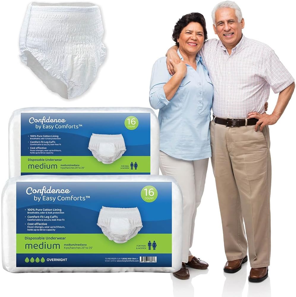 Premium Protection Absorbent Underwear for Seniors, Perfect for Day or Overnight use, Safe for Sensitive Skin, Cotton Liner, Discreet Protection for Men and Women, Size Med, 32 Count by Easy Comforts