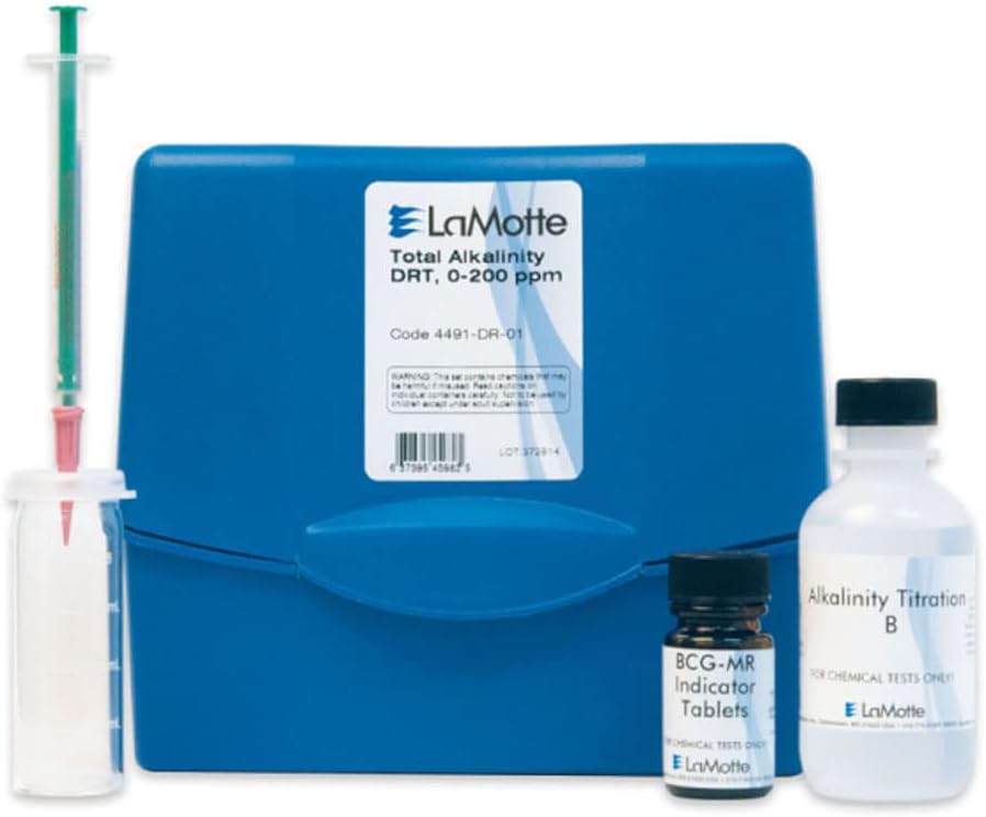 LaMotte 4491-DR-01 موديل WAT-DR مجموعة اختبار فردية لمعايرة القراءة المباشرة للقلوية الكلية، نطاق 0-200 جزء في المليون، 4 جزء في المليون كحساسية CaCO3
