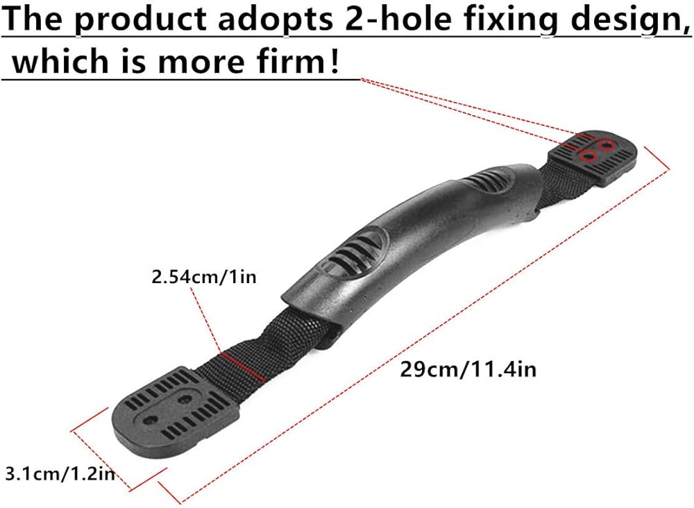 【Size】 the length of kayak carry handles is 11.4 inch/ 29.0 cm, Nylon strap width :1.0 inch/ 2.5 cm, Pedestal:1.26 inch/ 3.2 cm,Pedestal hole diameter:0.177 inch/0.45 cm.